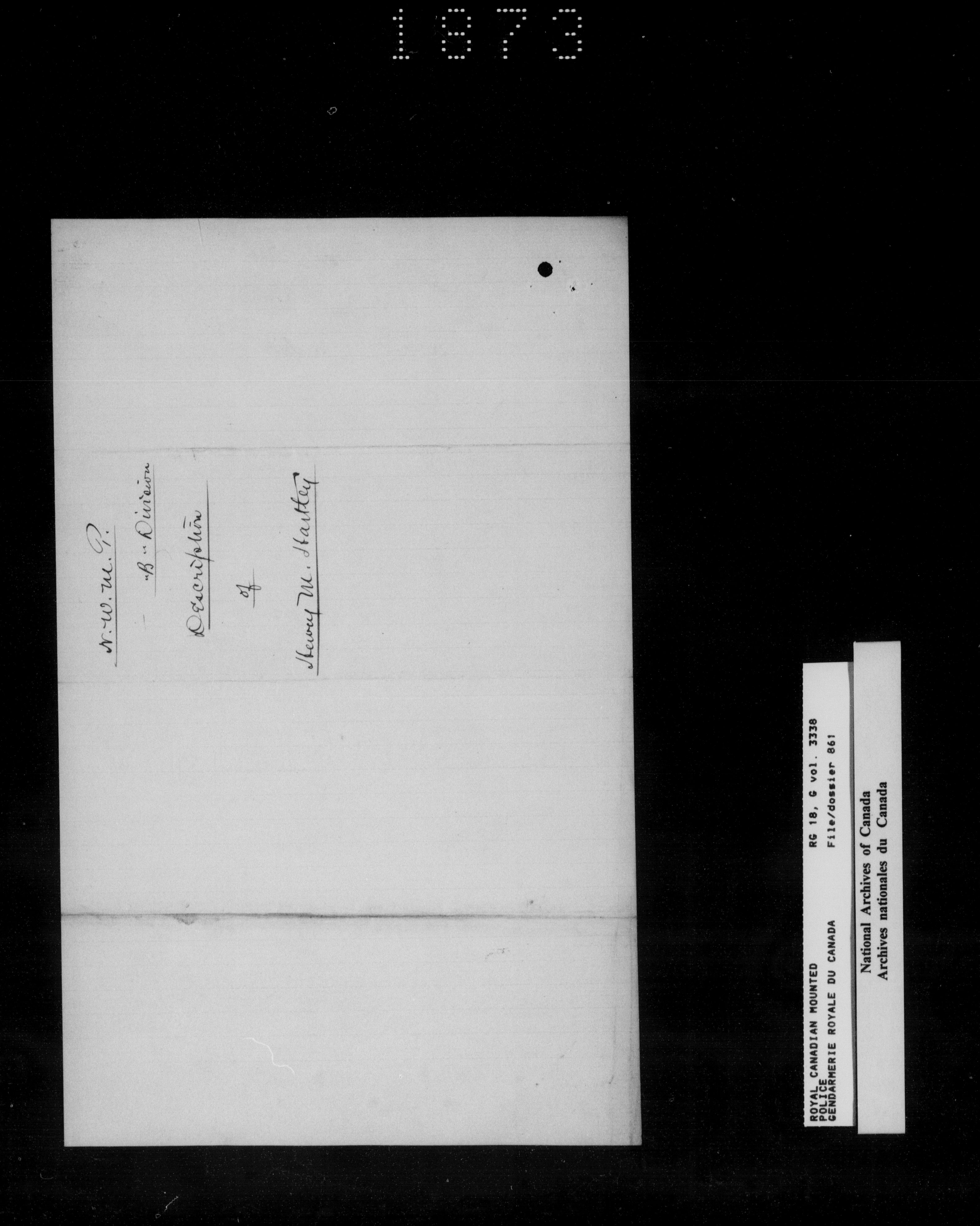 North West Mounted Police : Personnel files for members of the NWMP (1873-1904)