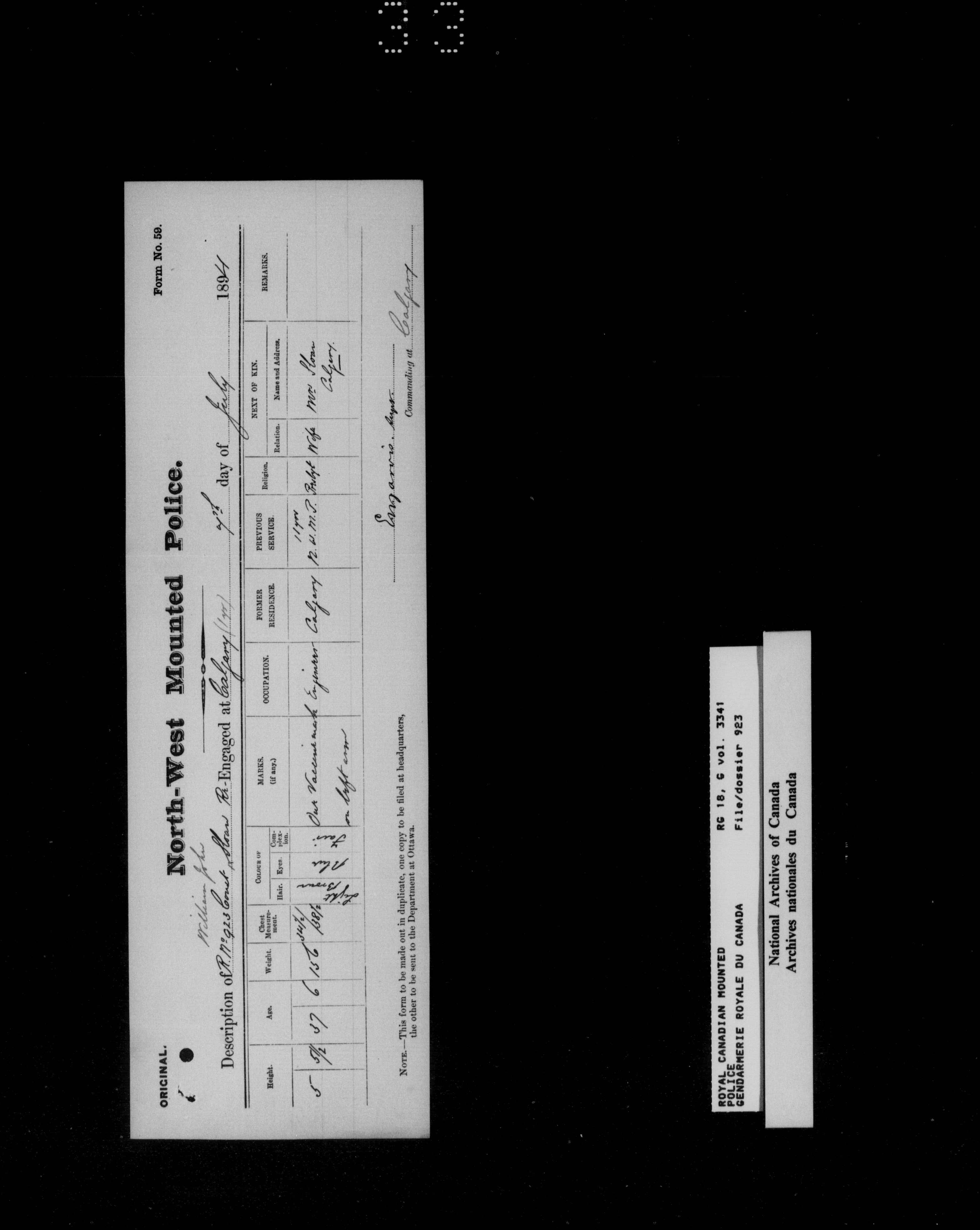 North West Mounted Police : Personnel files for members of the NWMP (1873-1904)