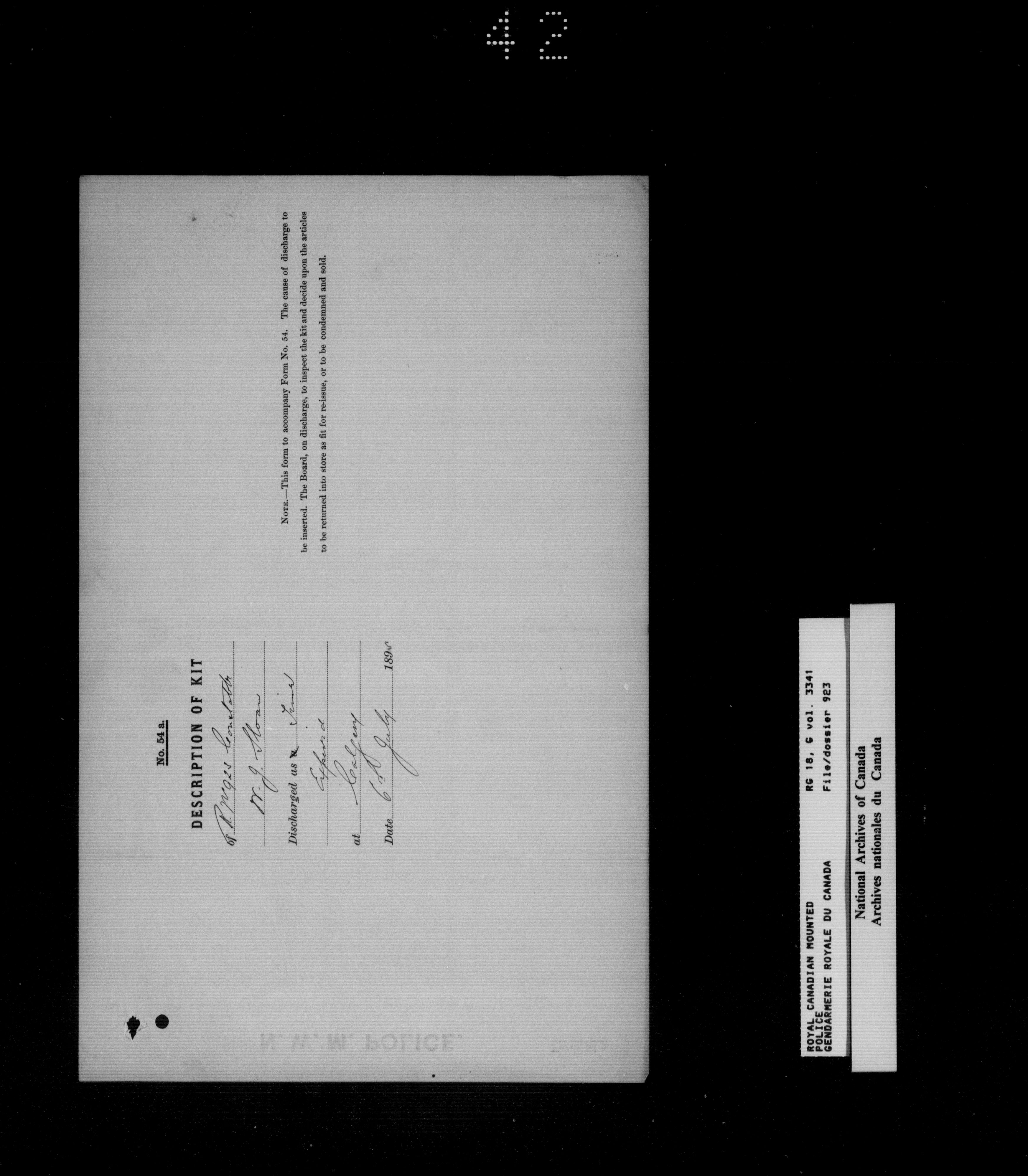 North West Mounted Police : Personnel files for members of the NWMP (1873-1904)