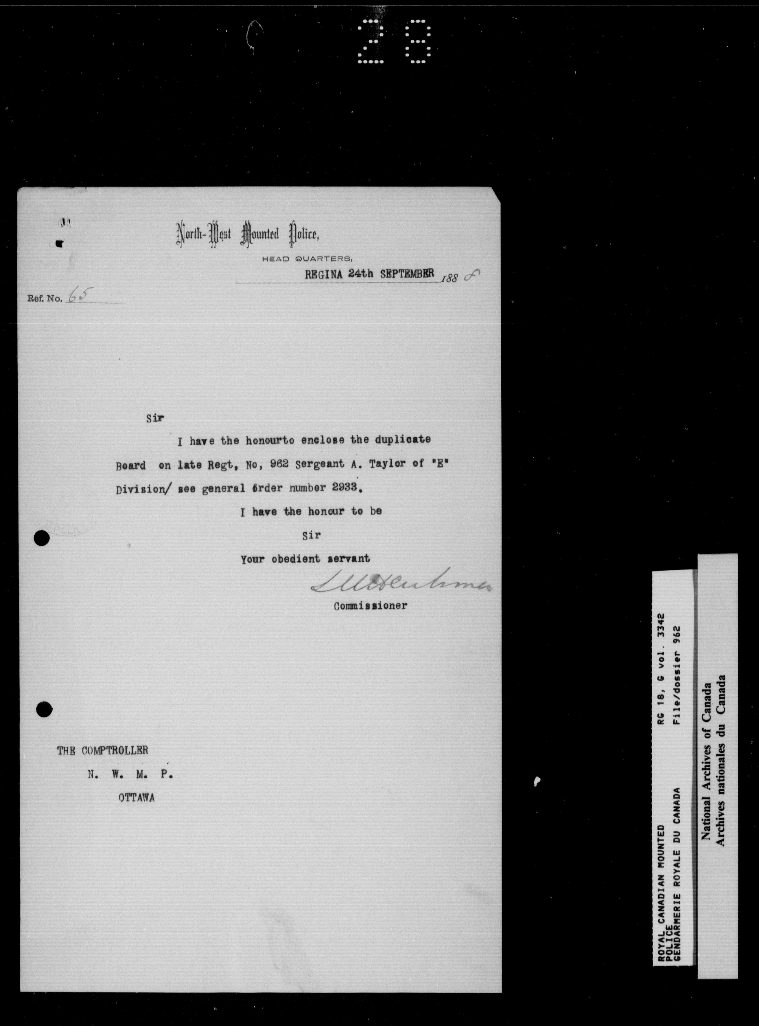 North West Mounted Police : Personnel files for members of the NWMP (1873-1904)