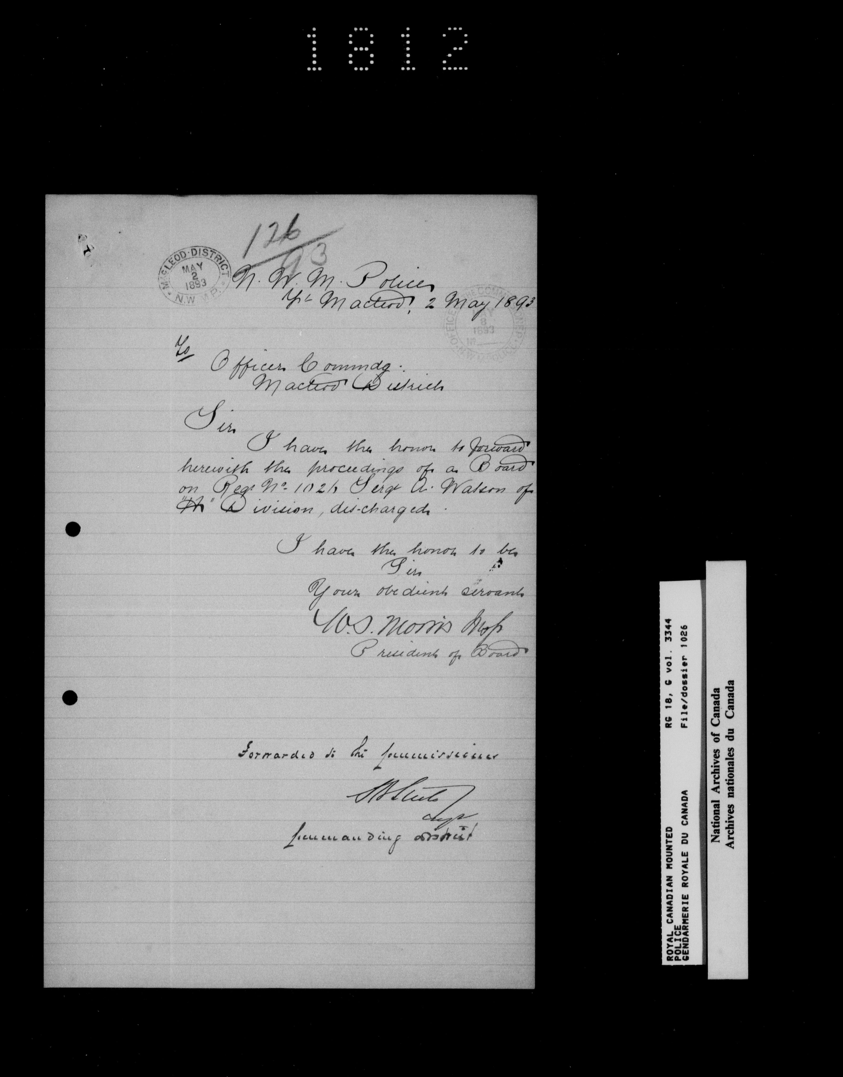 North West Mounted Police : Personnel files for members of the NWMP (1873-1904)