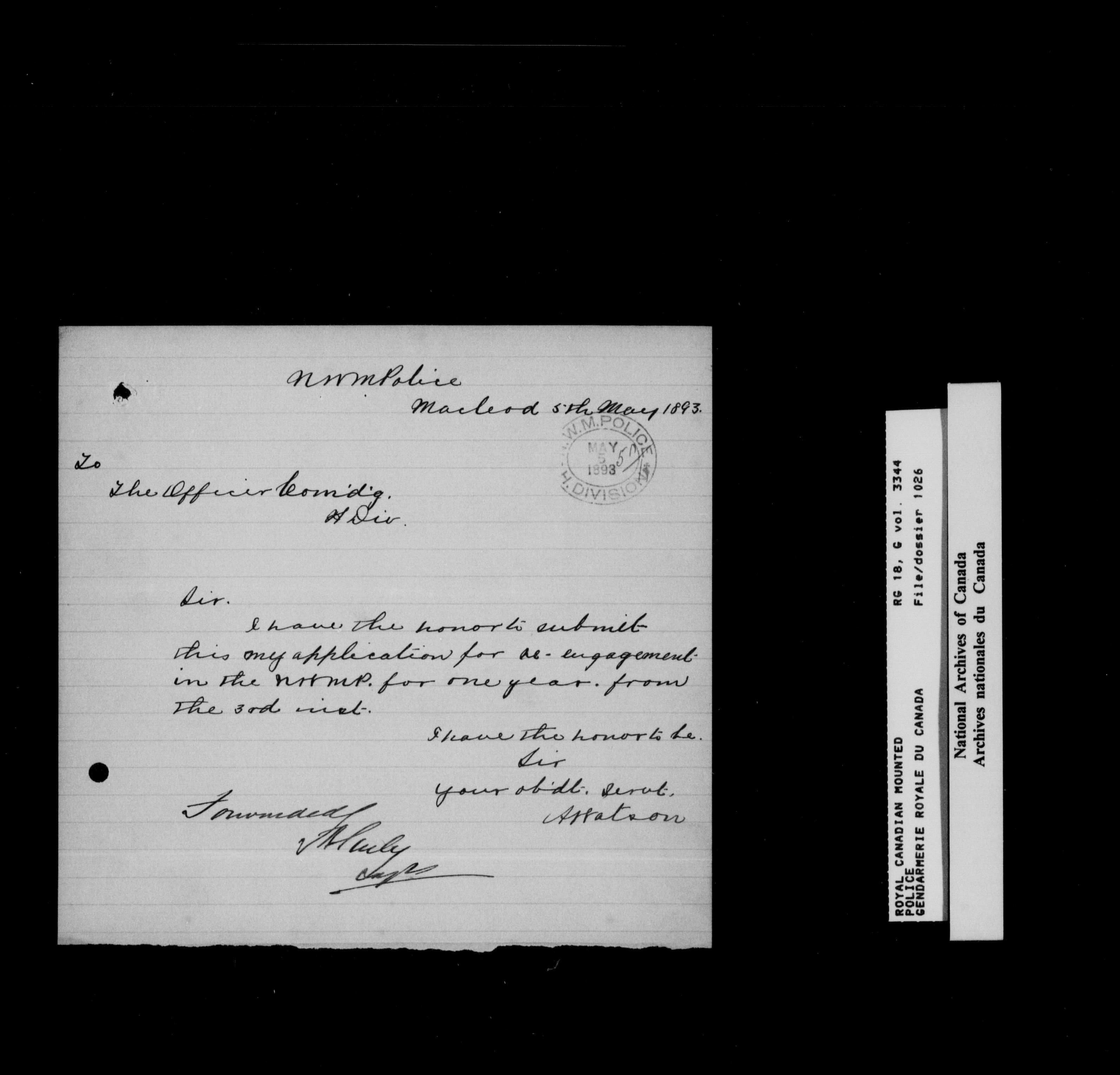 North West Mounted Police : Personnel files for members of the NWMP (1873-1904)