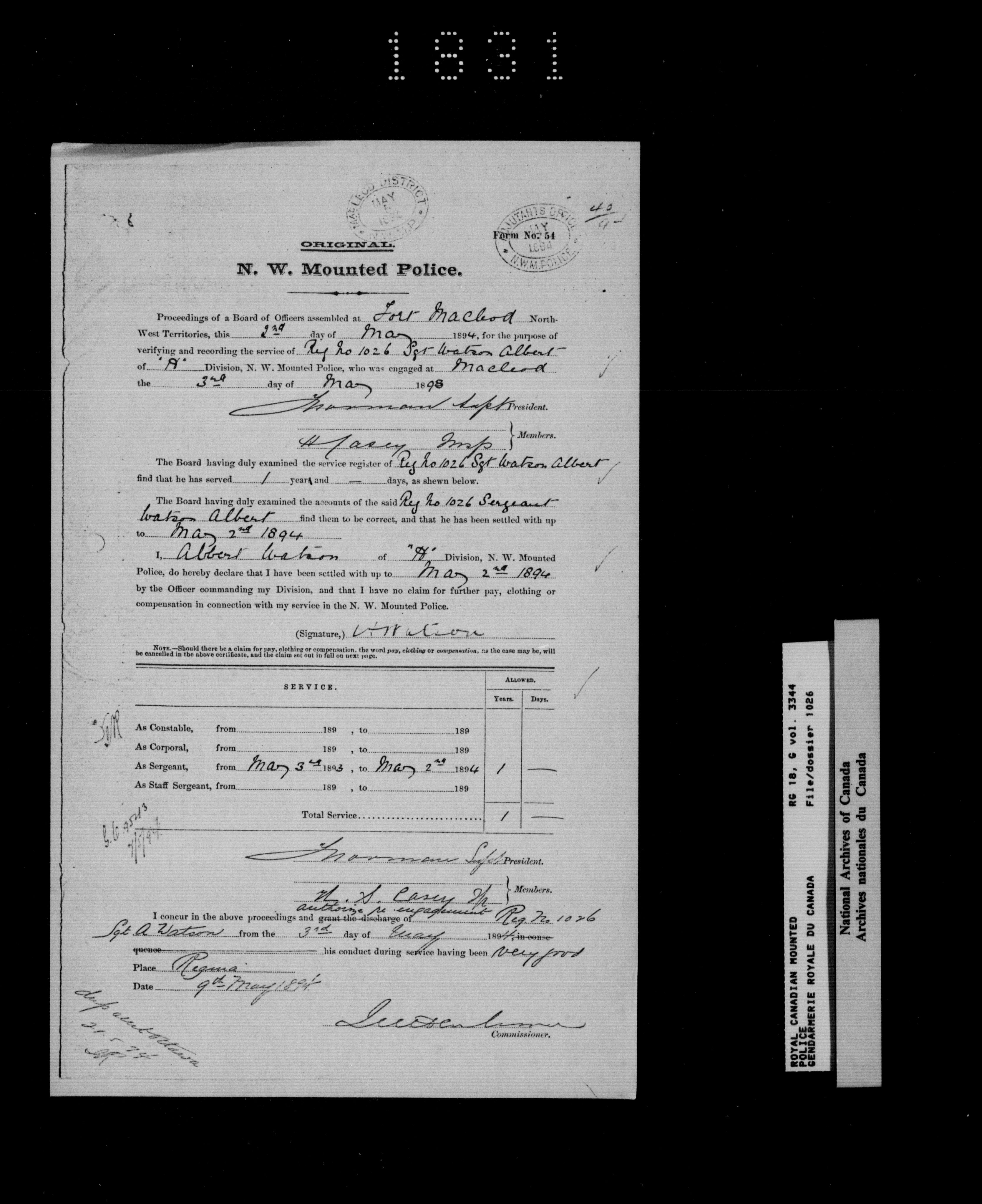 North West Mounted Police : Personnel files for members of the NWMP (1873-1904)