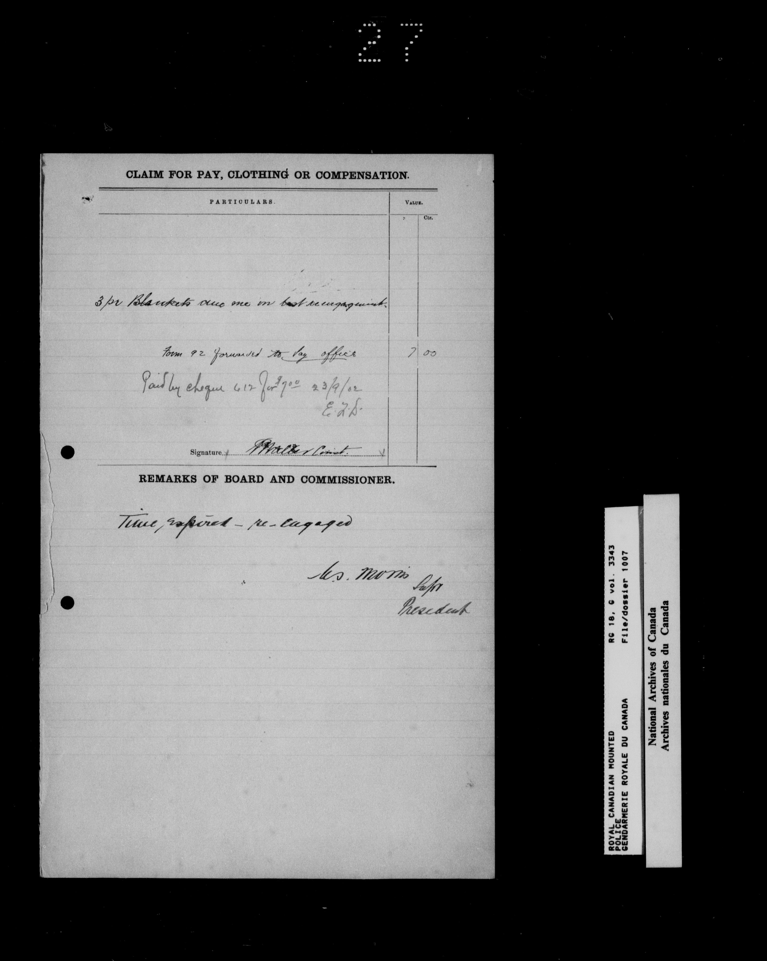 North West Mounted Police : Personnel files for members of the NWMP (1873-1904)