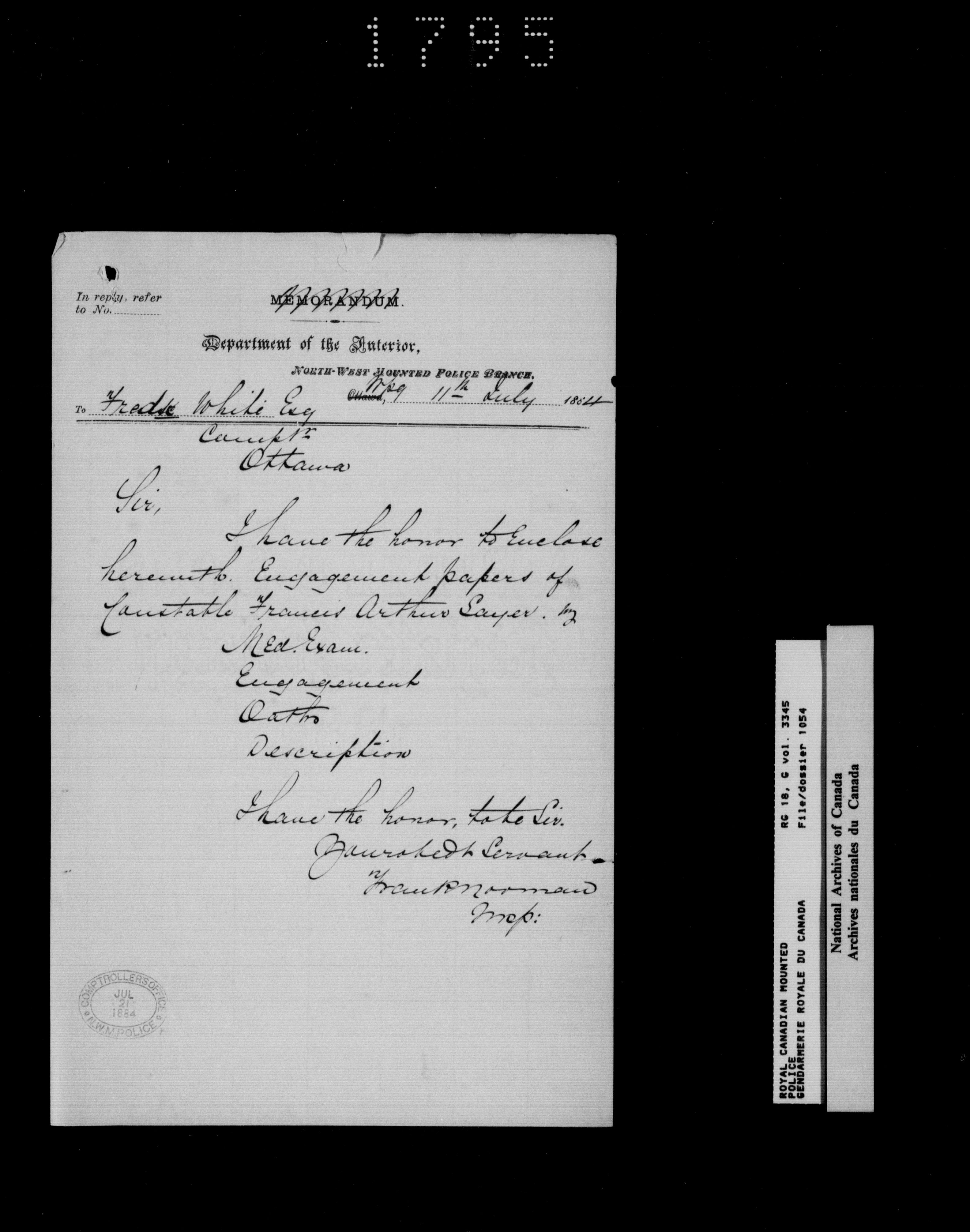 North West Mounted Police : Personnel files for members of the NWMP (1873-1904)