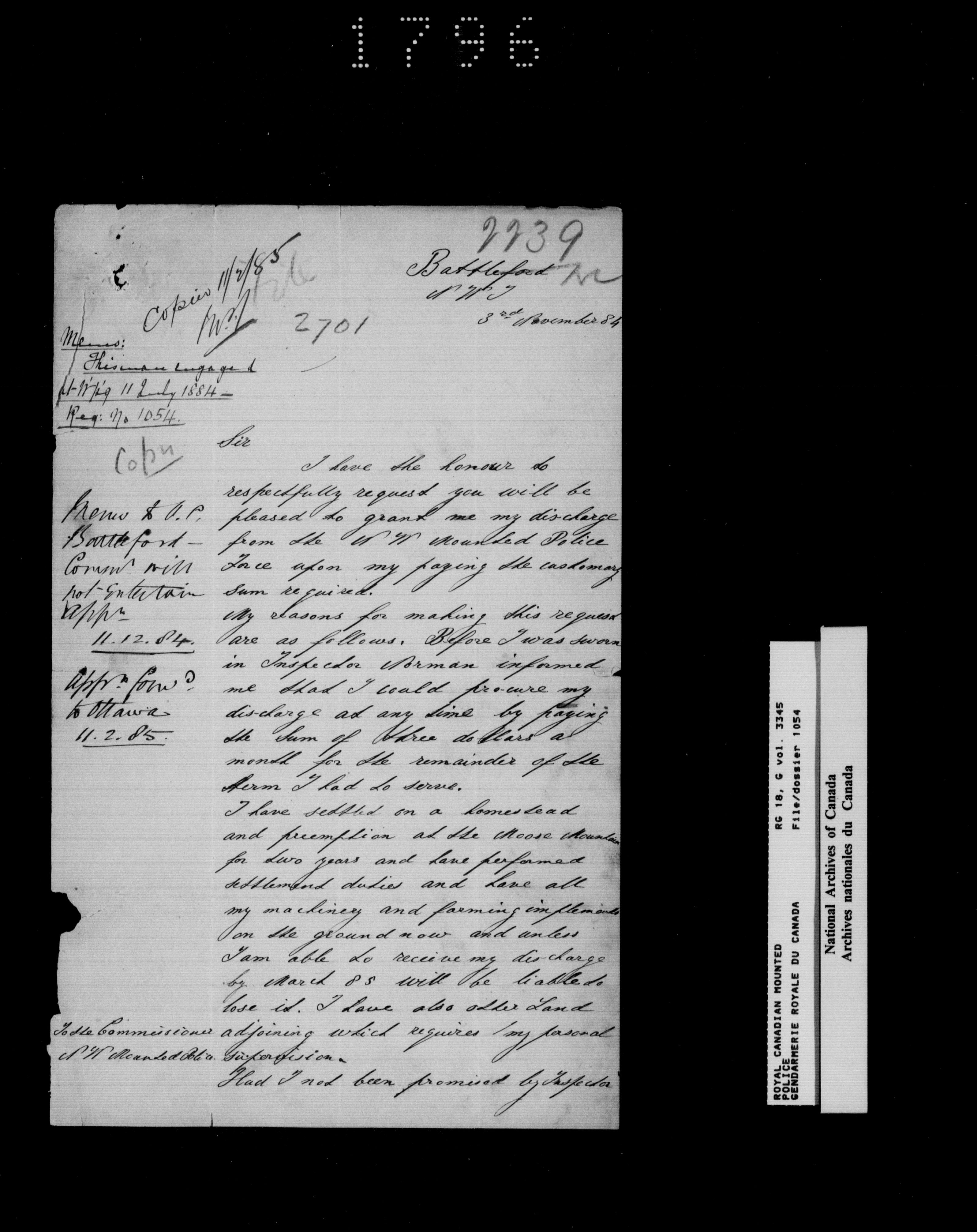 North West Mounted Police : Personnel files for members of the NWMP (1873-1904)
