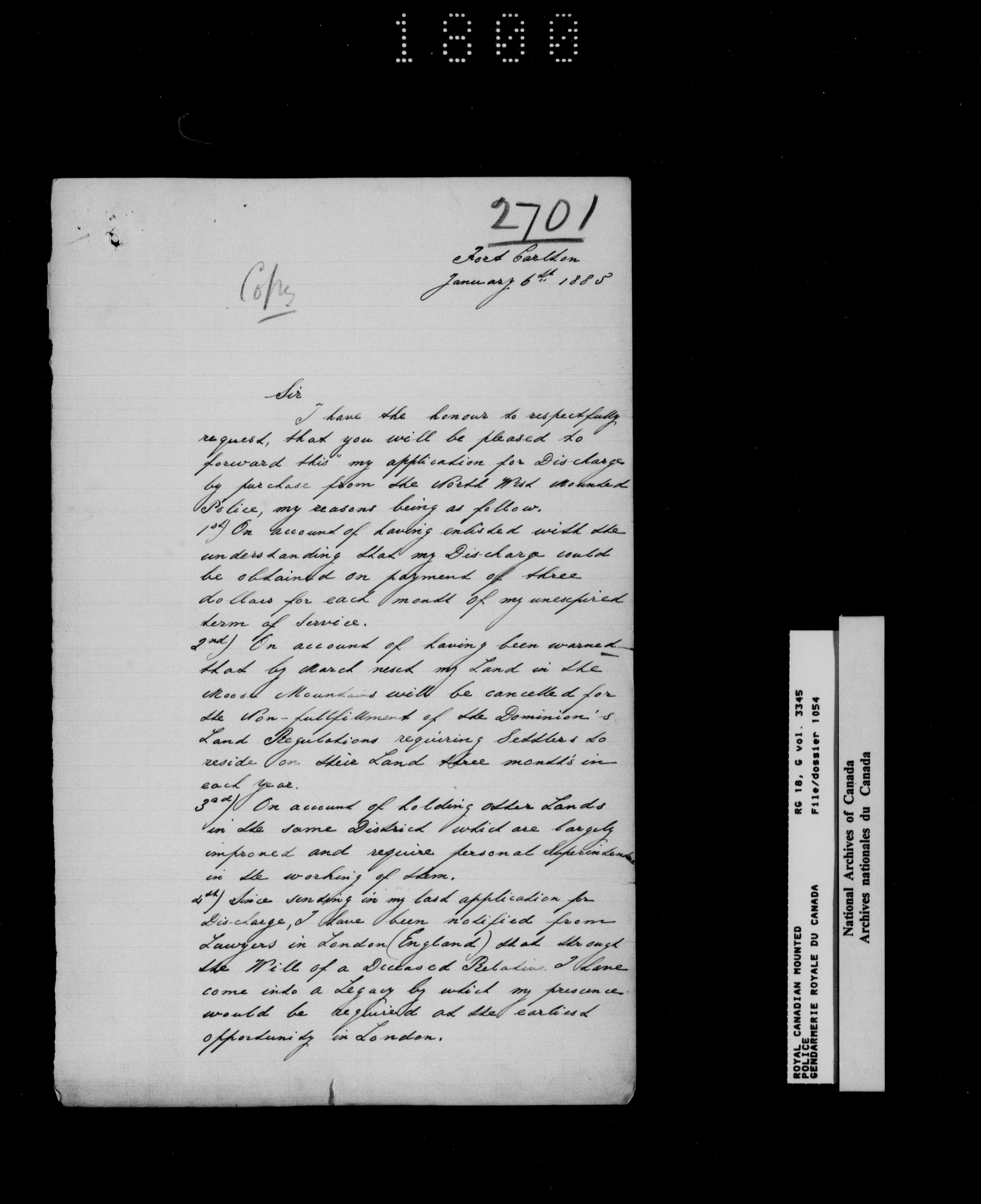 North West Mounted Police : Personnel files for members of the NWMP (1873-1904)