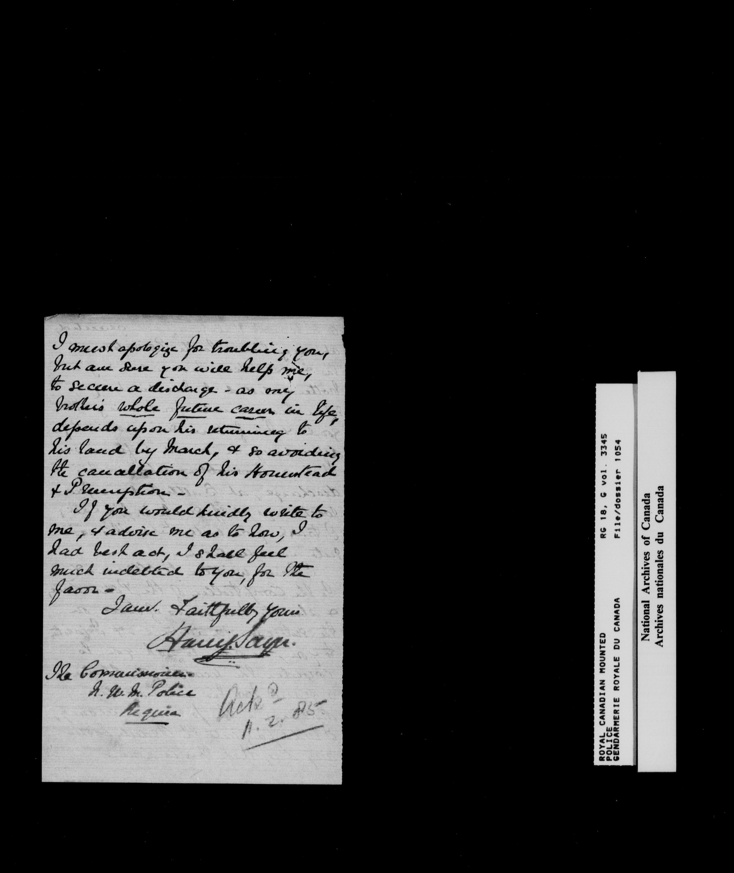 North West Mounted Police : Personnel files for members of the NWMP (1873-1904)