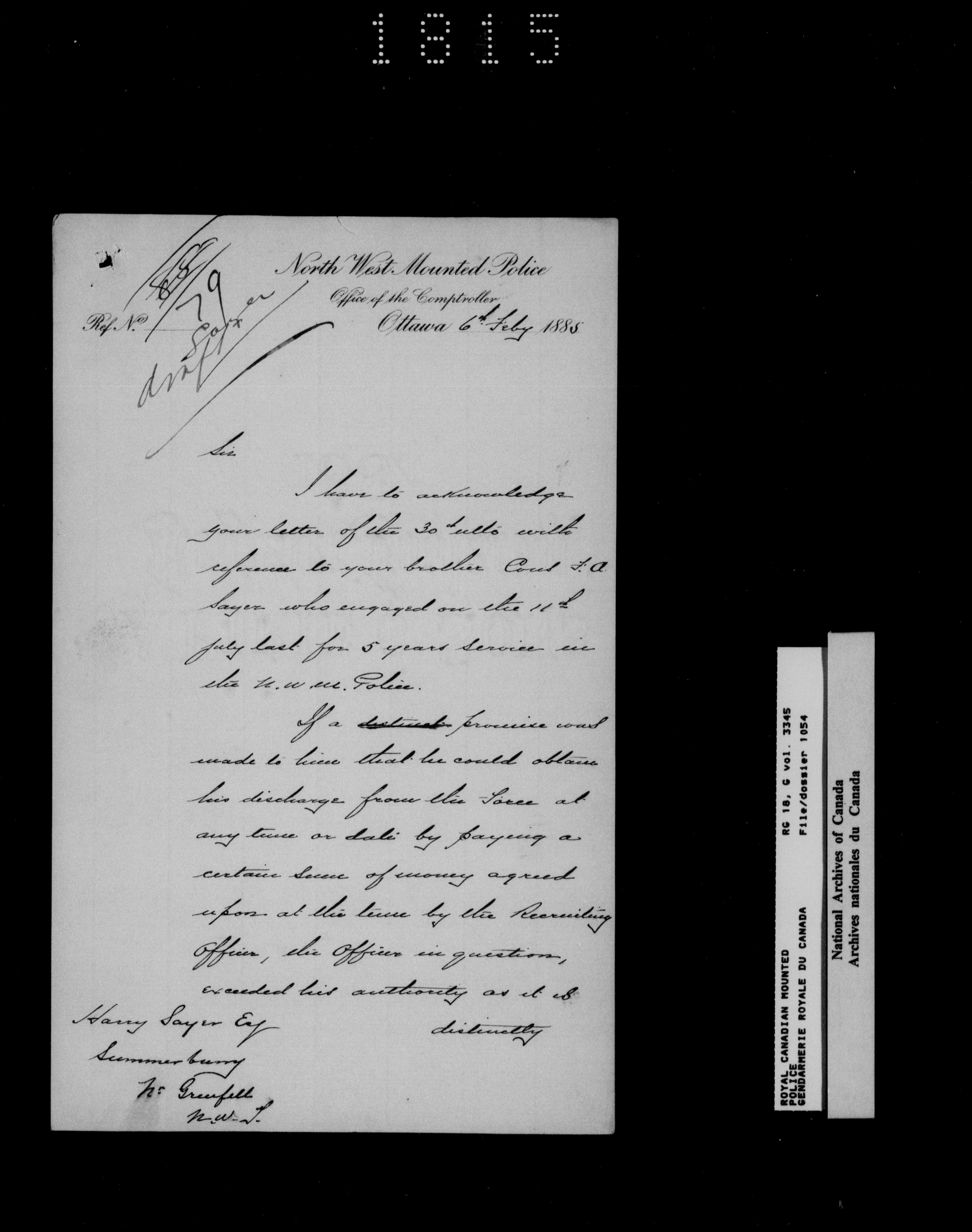 North West Mounted Police : Personnel files for members of the NWMP (1873-1904)