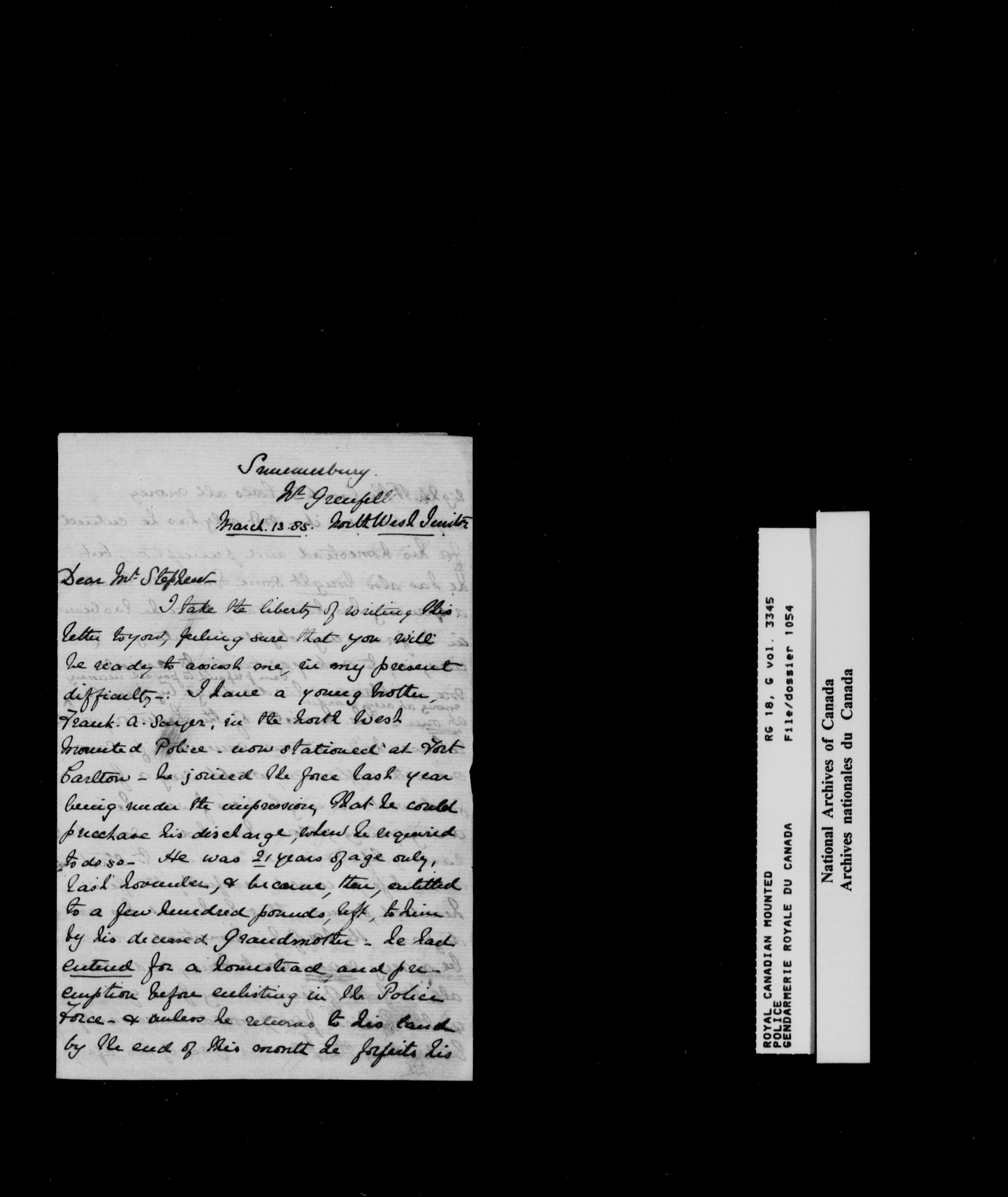North West Mounted Police : Personnel files for members of the NWMP (1873-1904)