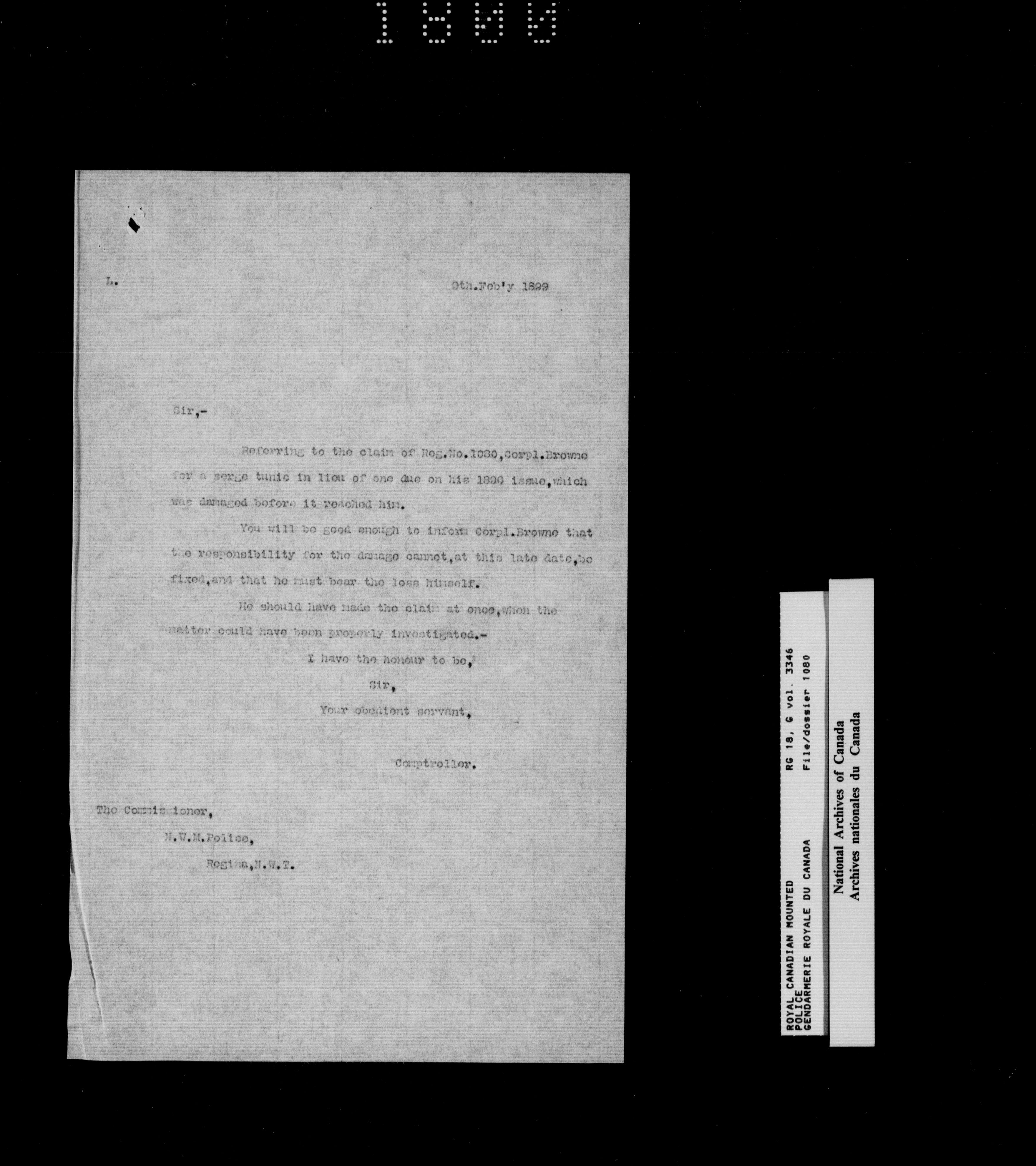 North West Mounted Police : Personnel files for members of the NWMP (1873-1904)