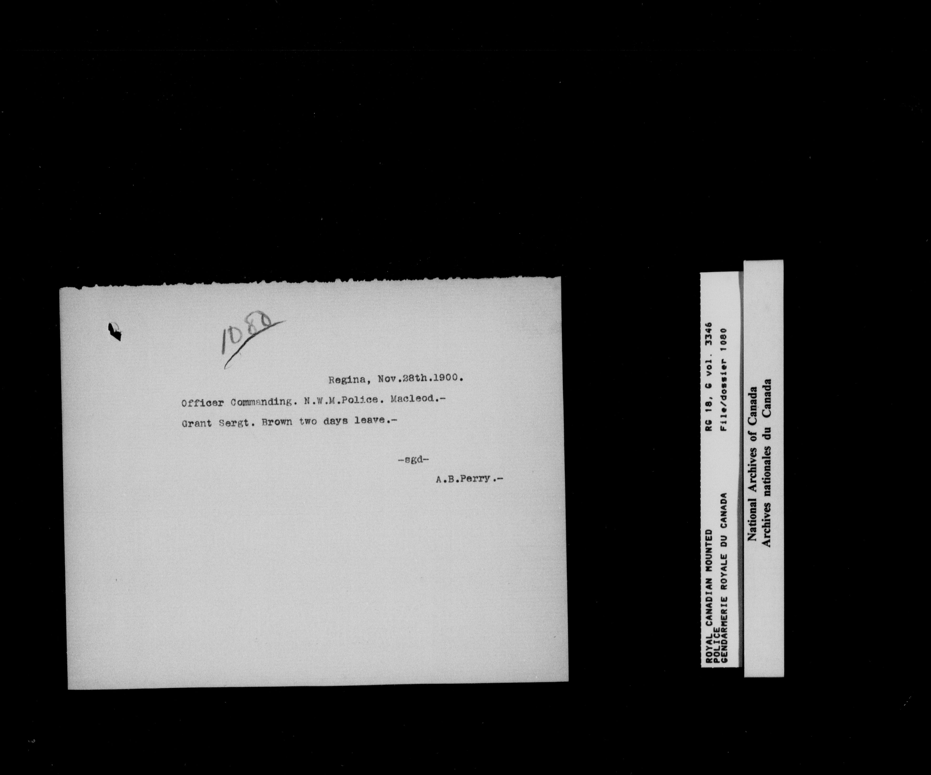 North West Mounted Police : Personnel files for members of the NWMP (1873-1904)