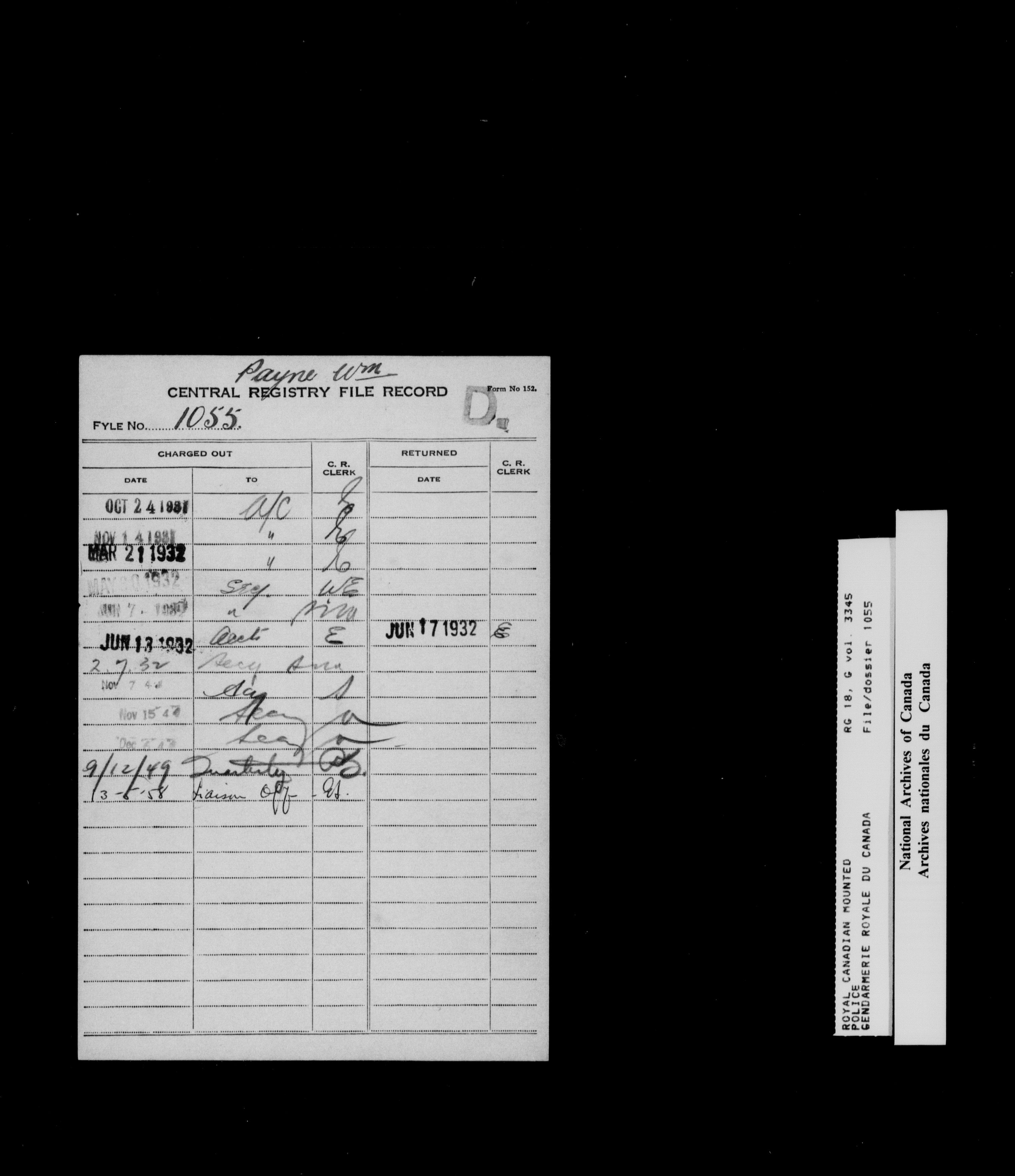 North West Mounted Police : Personnel files for members of the NWMP (1873-1904)