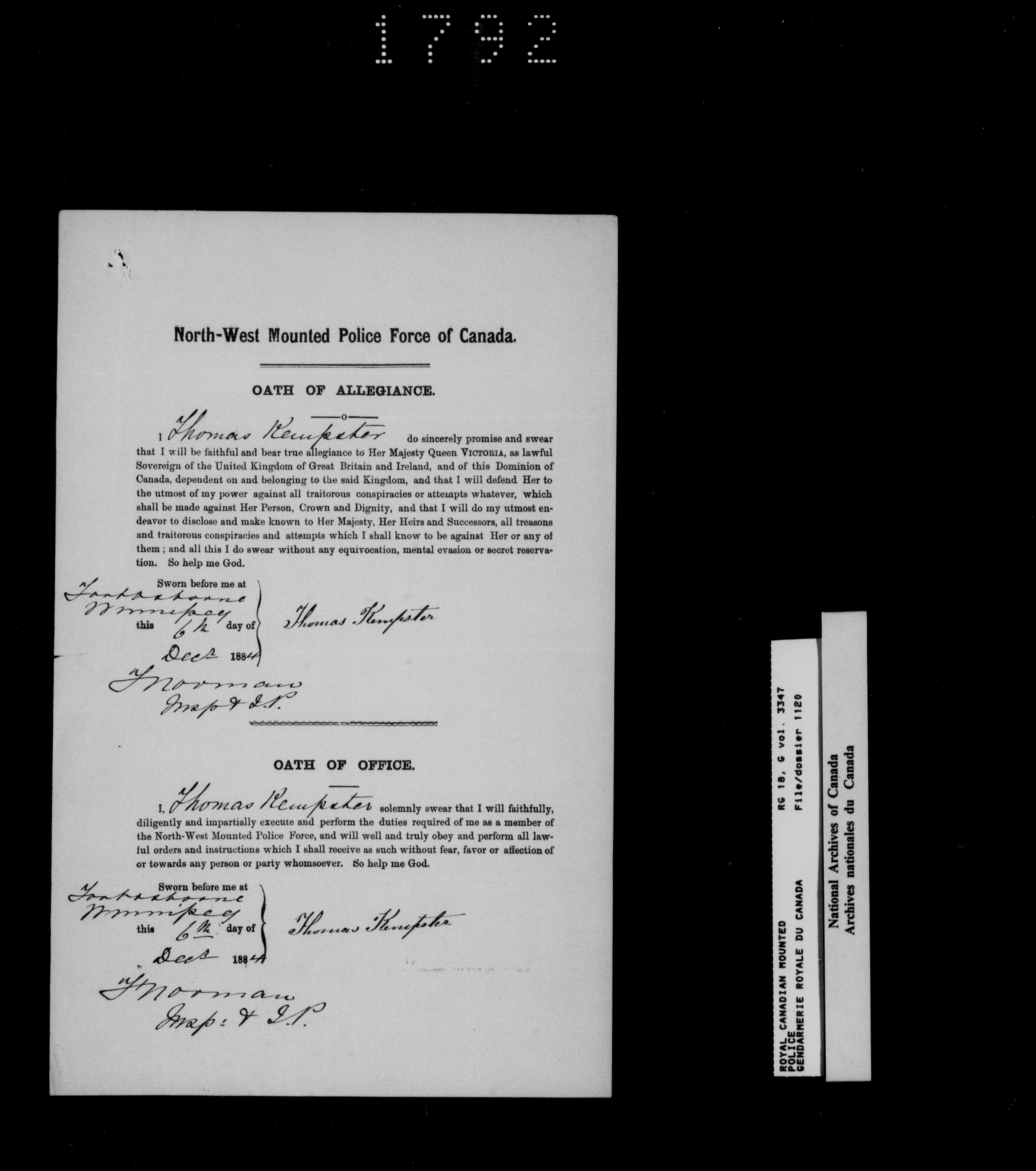 North West Mounted Police : Personnel files for members of the NWMP (1873-1904)