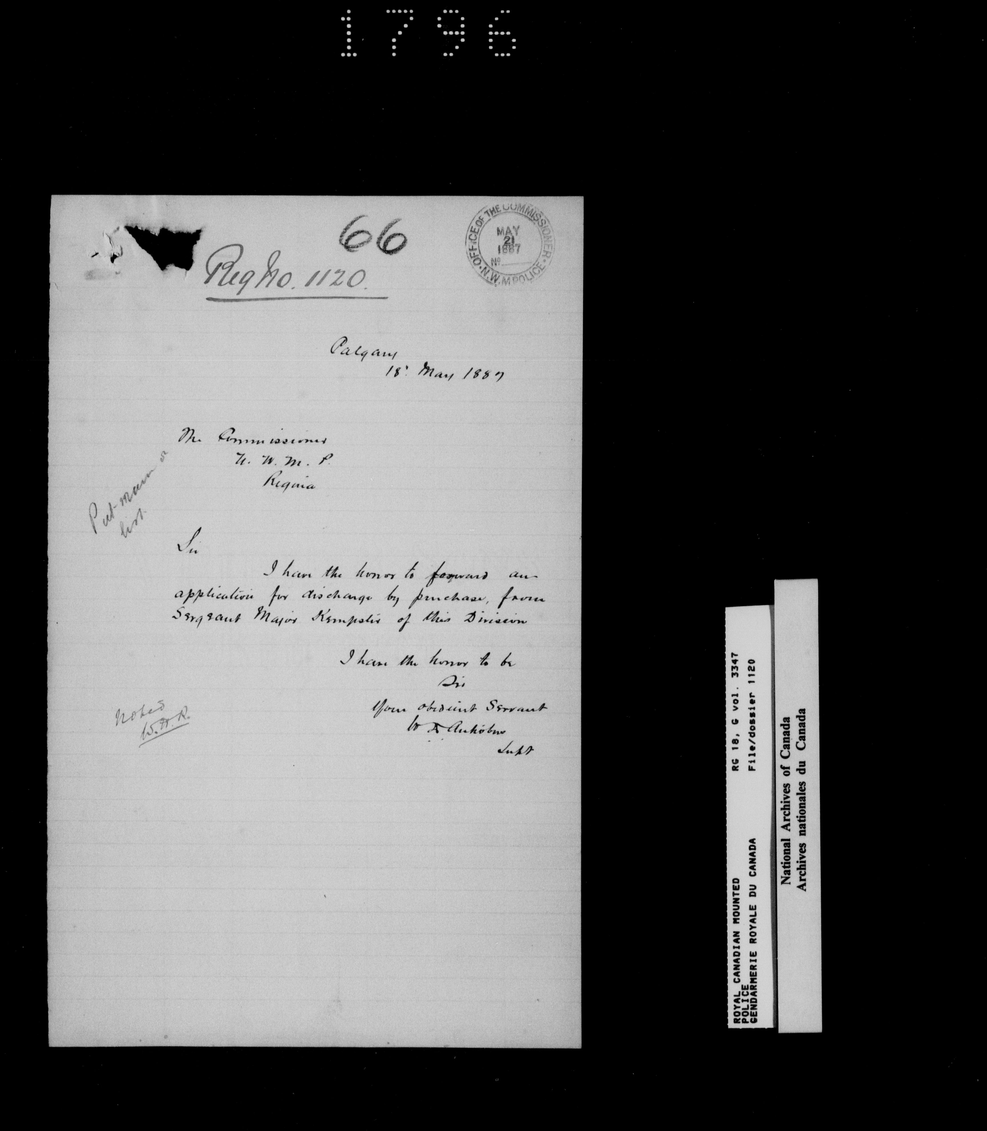 North West Mounted Police : Personnel files for members of the NWMP (1873-1904) : T-18230