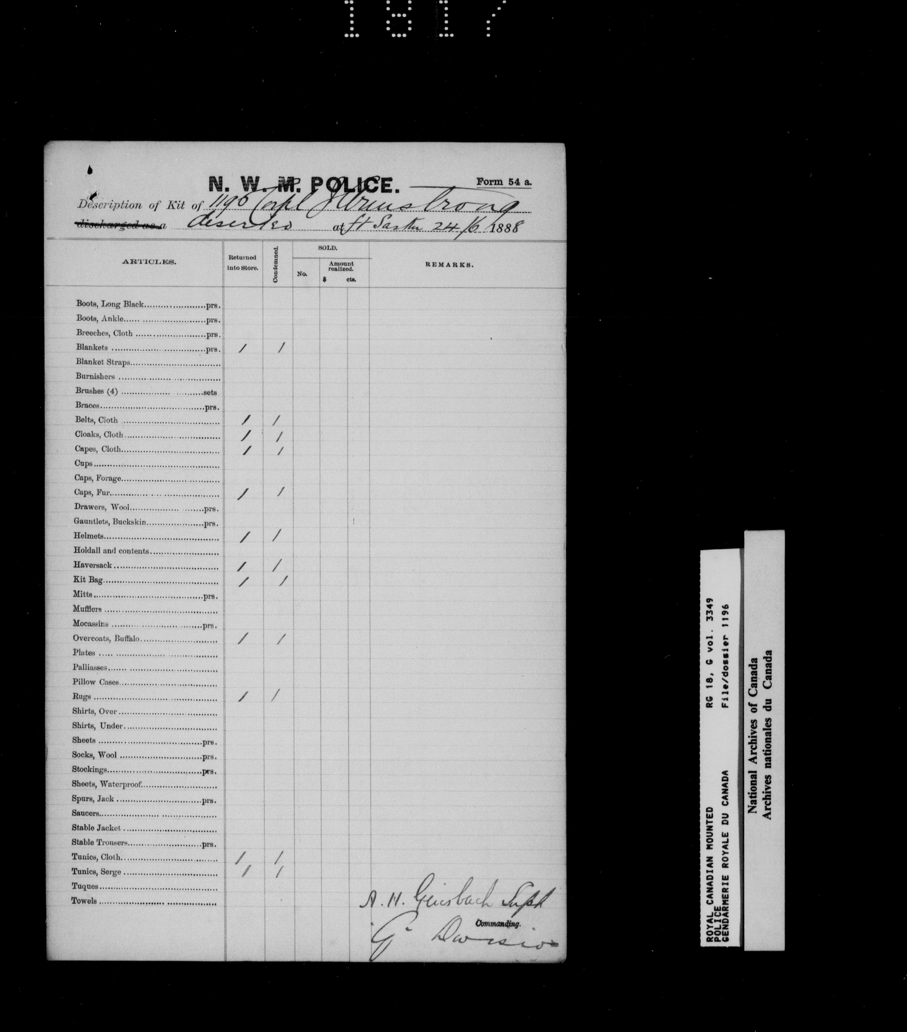North West Mounted Police : Personnel files for members of the NWMP (1873-1904)