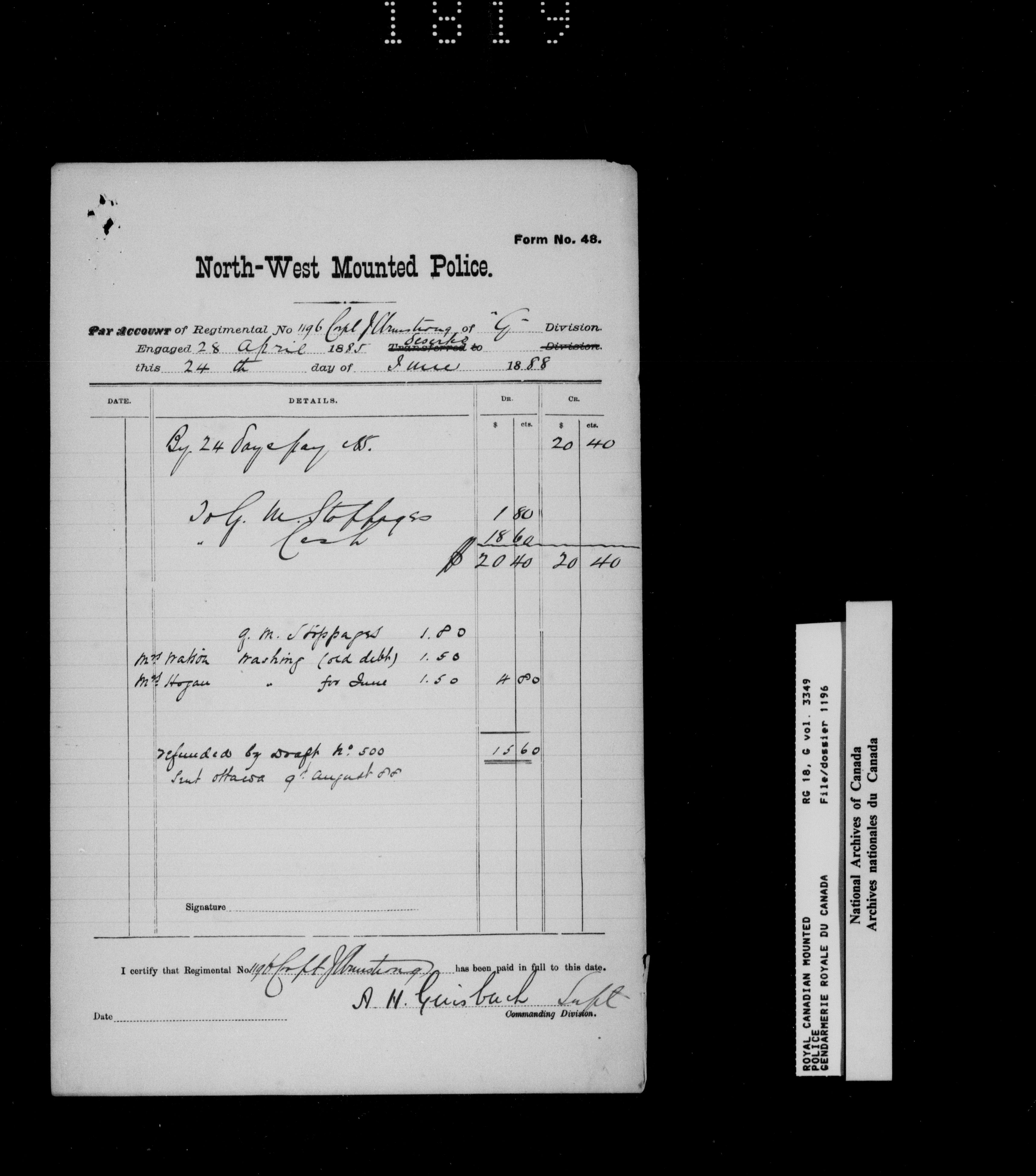 North West Mounted Police : Personnel files for members of the NWMP (1873-1904)