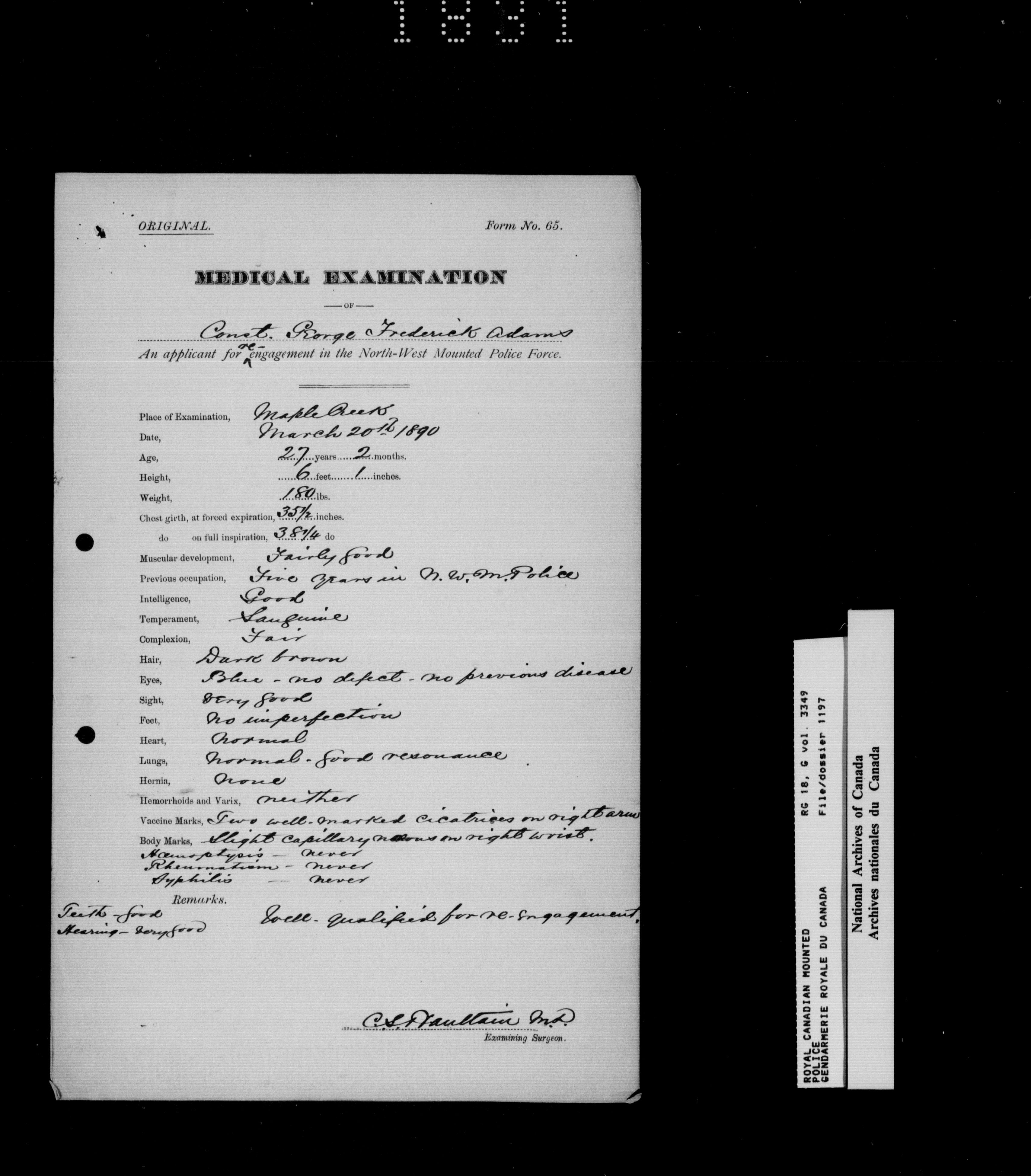 North West Mounted Police : Personnel files for members of the NWMP (1873-1904)