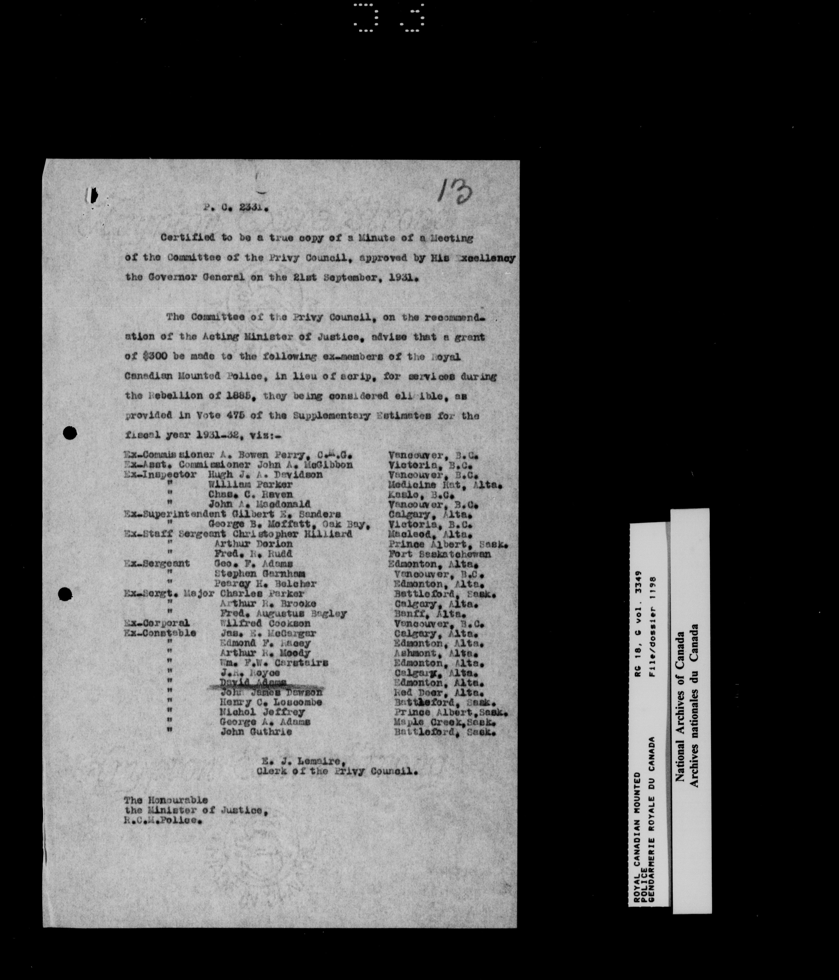 North West Mounted Police : Personnel files for members of the NWMP (1873-1904)