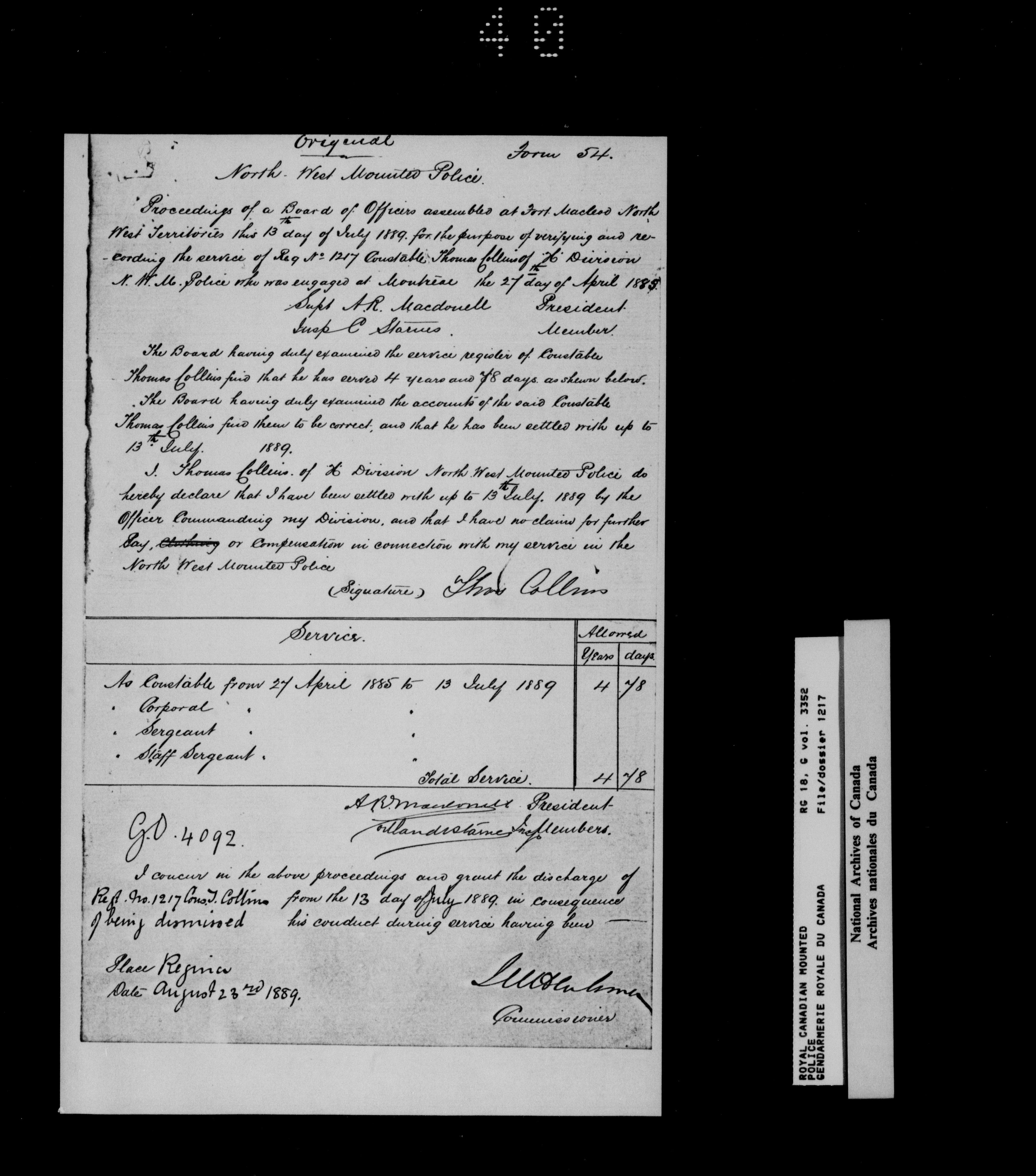 North West Mounted Police : Personnel files for members of the NWMP (1873-1904)