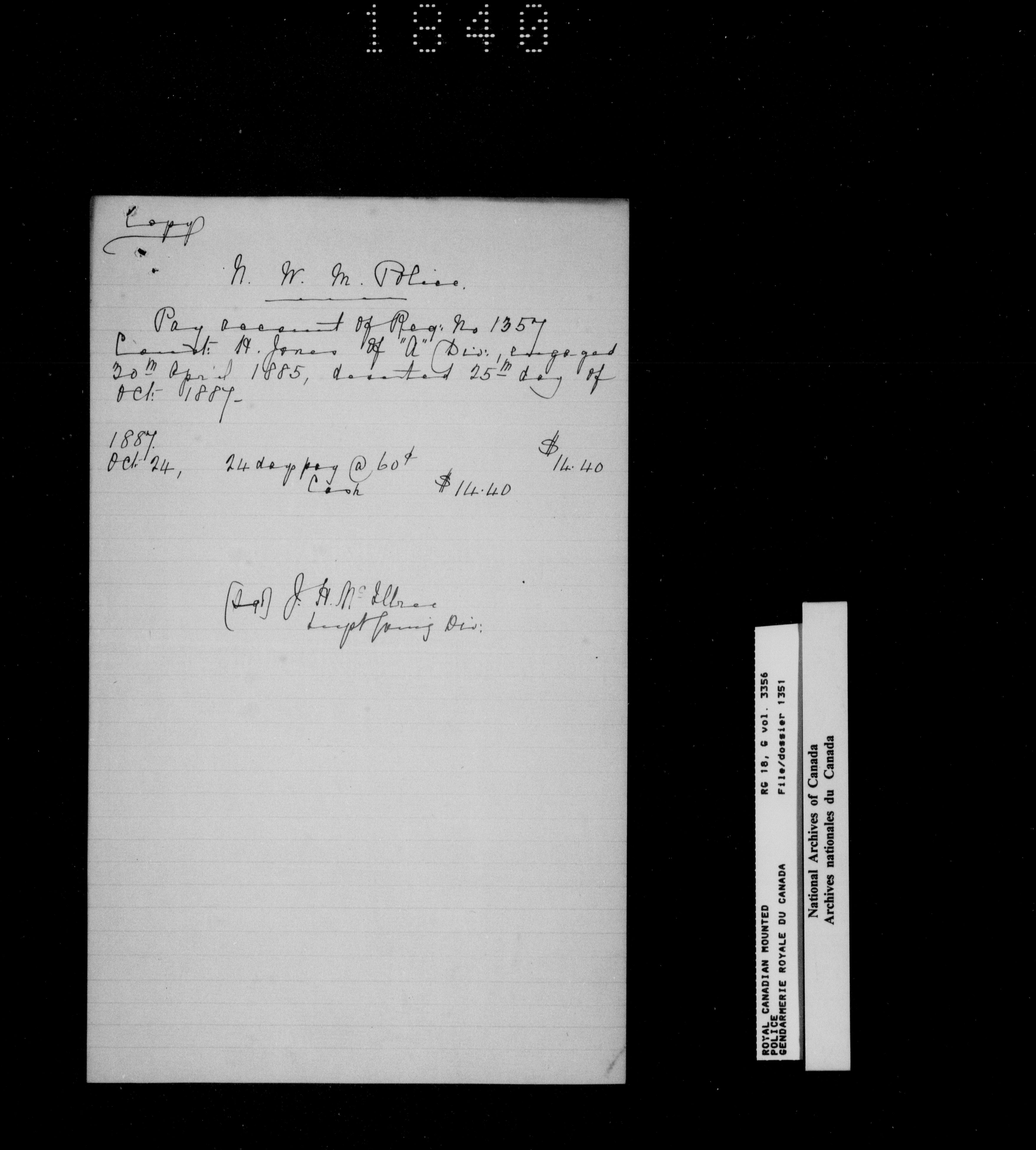 North West Mounted Police : Personnel files for members of the NWMP (1873-1904)