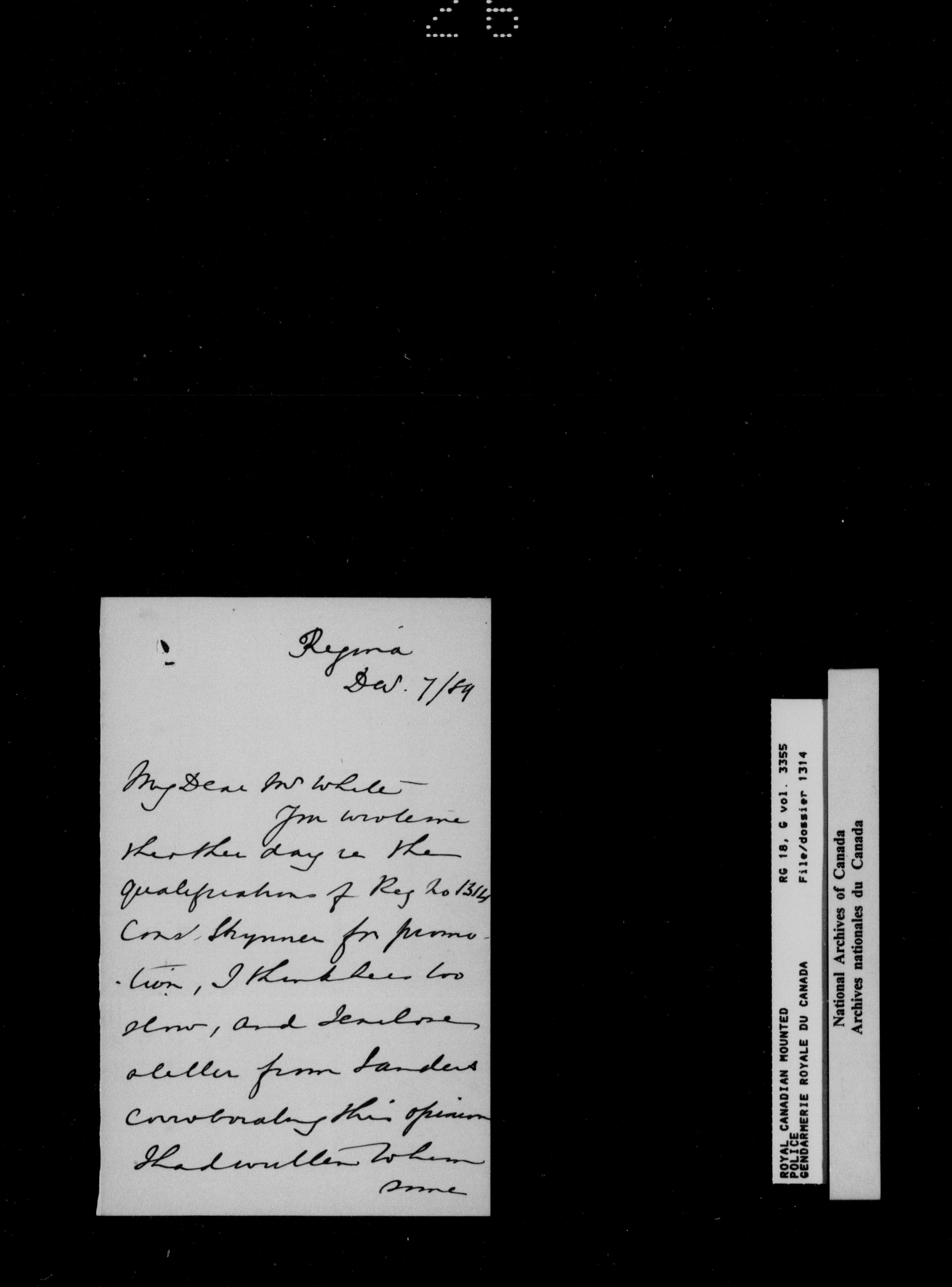 North West Mounted Police : Personnel files for members of the NWMP (1873-1904)