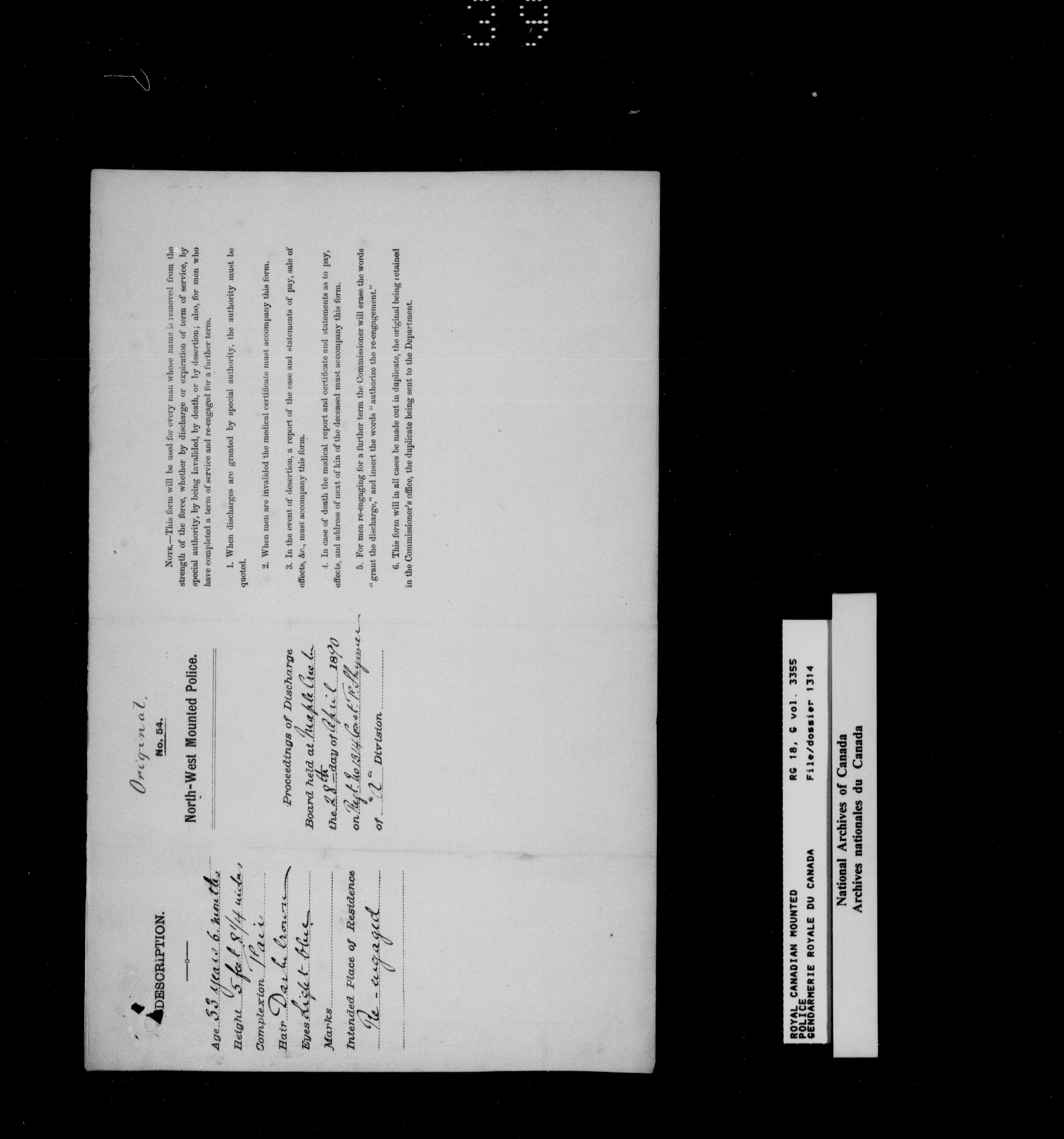 North West Mounted Police : Personnel files for members of the NWMP (1873-1904)