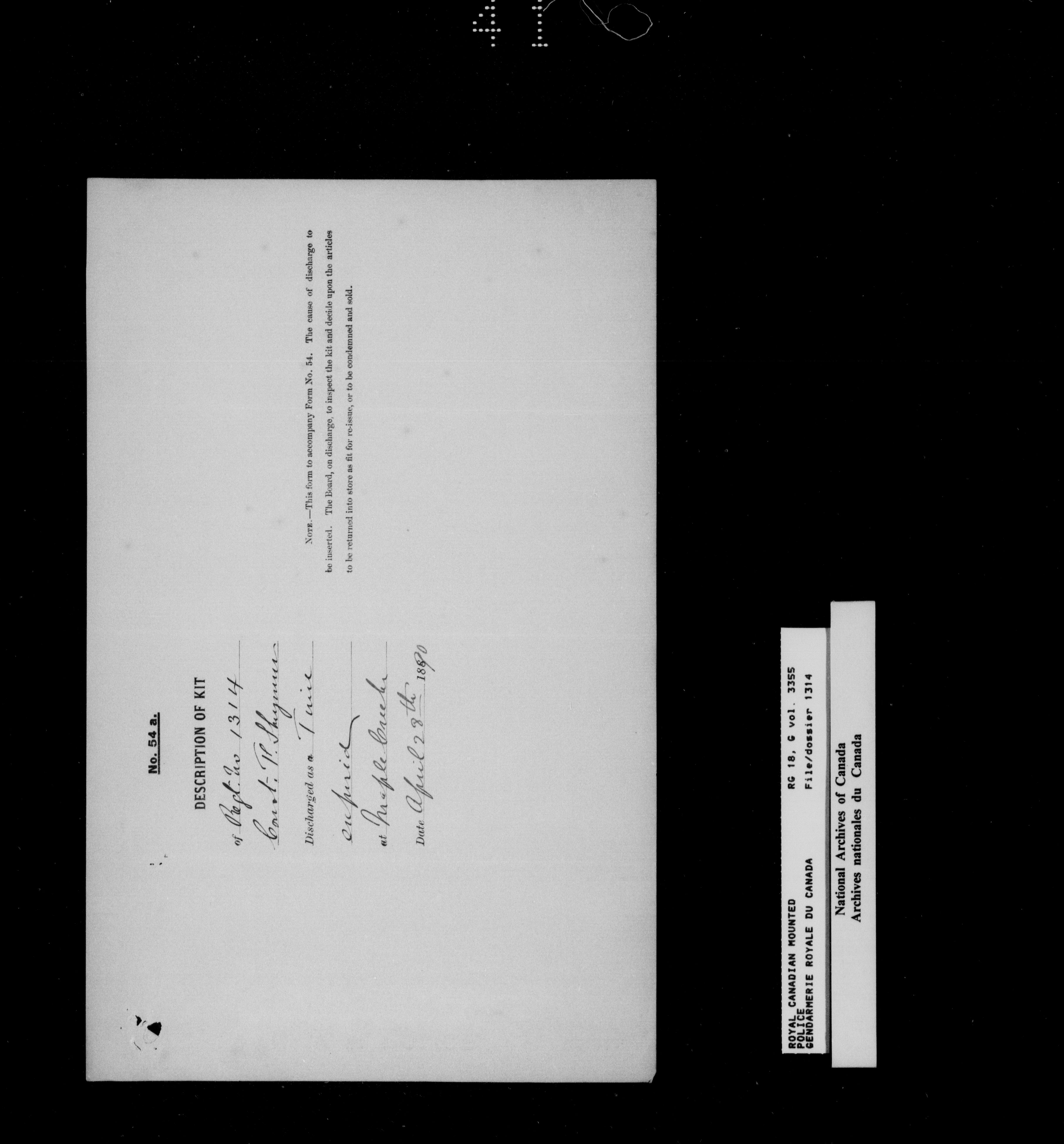 North West Mounted Police : Personnel files for members of the NWMP (1873-1904)