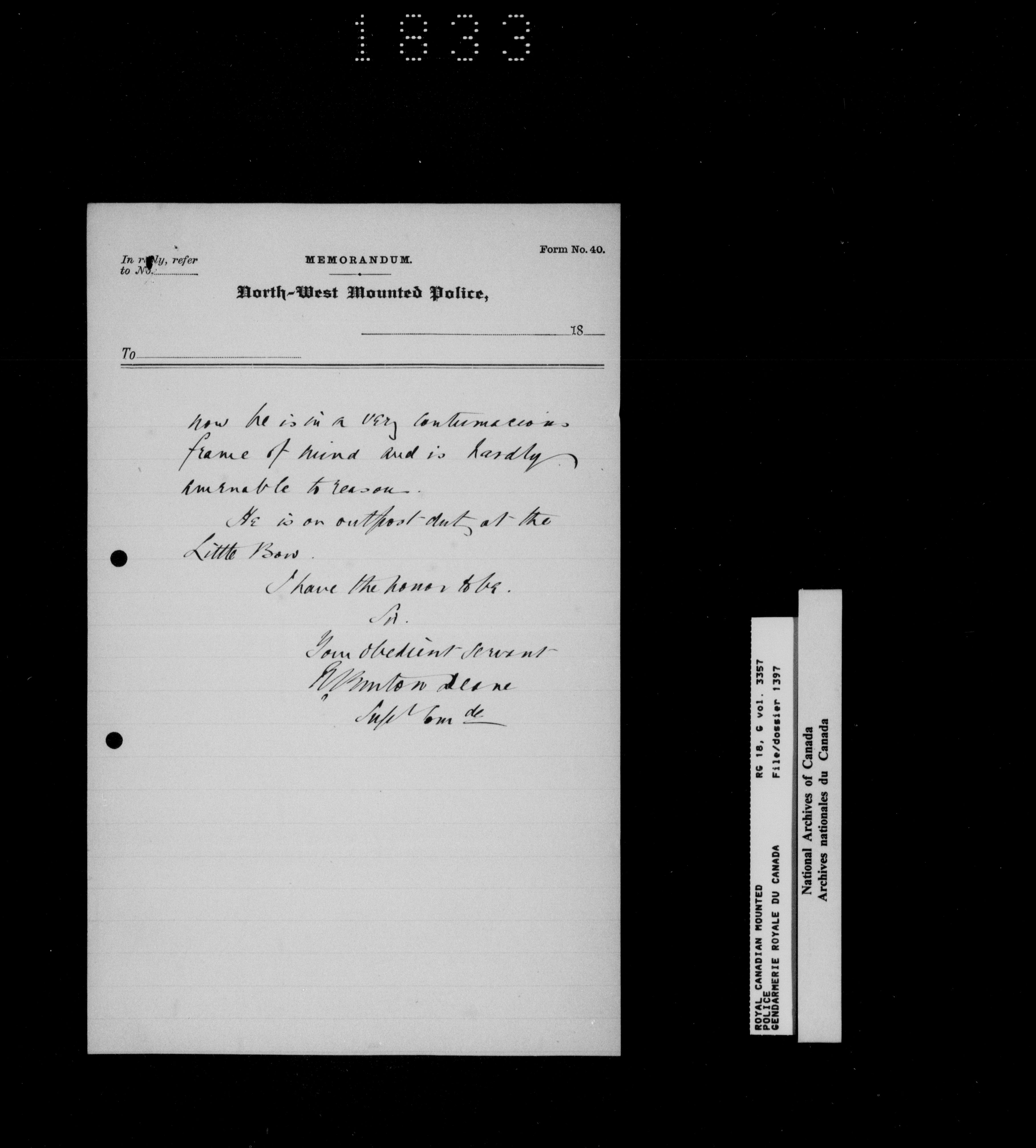 North West Mounted Police : Personnel files for members of the NWMP (1873-1904)