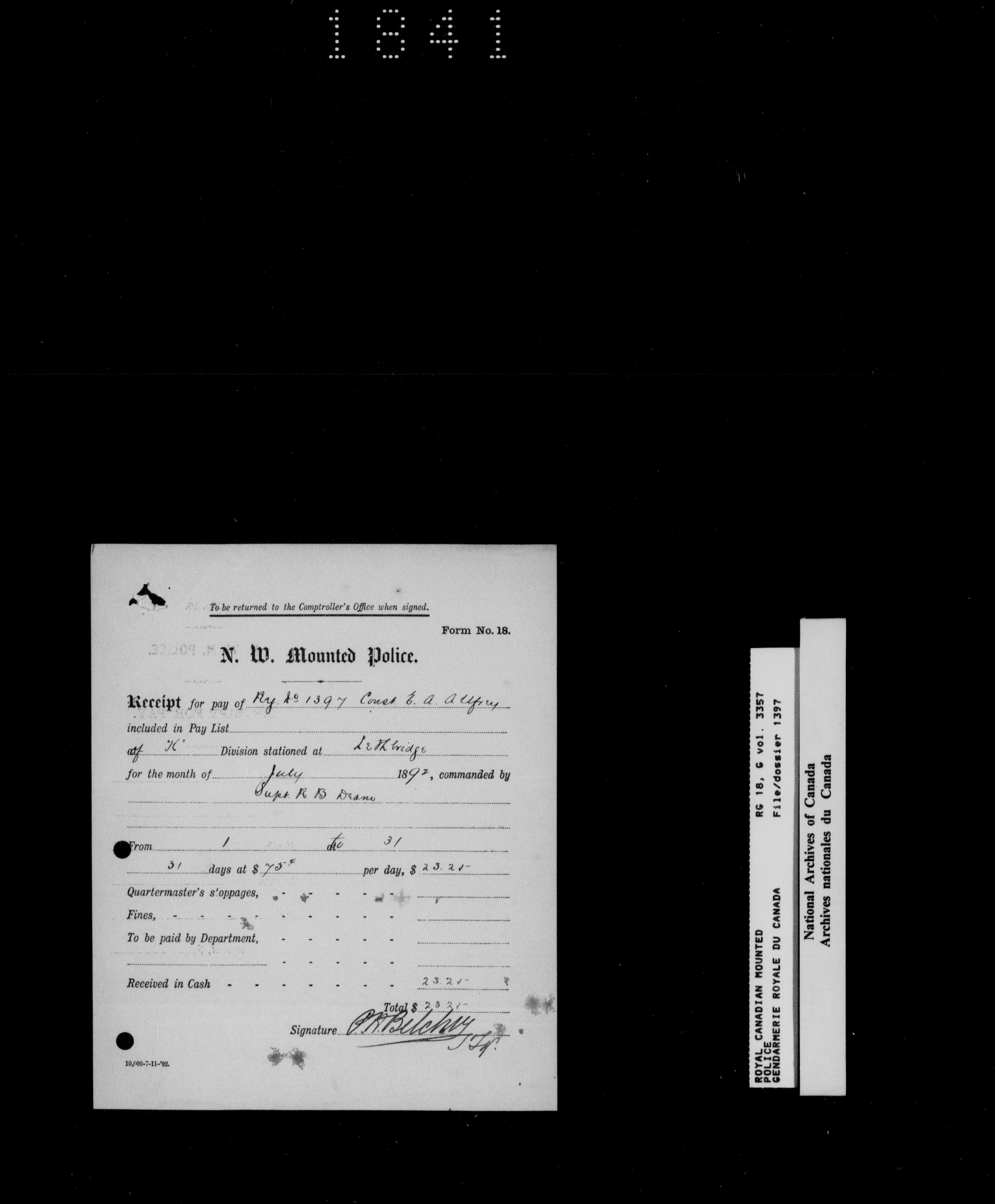 North West Mounted Police : Personnel files for members of the NWMP (1873-1904)