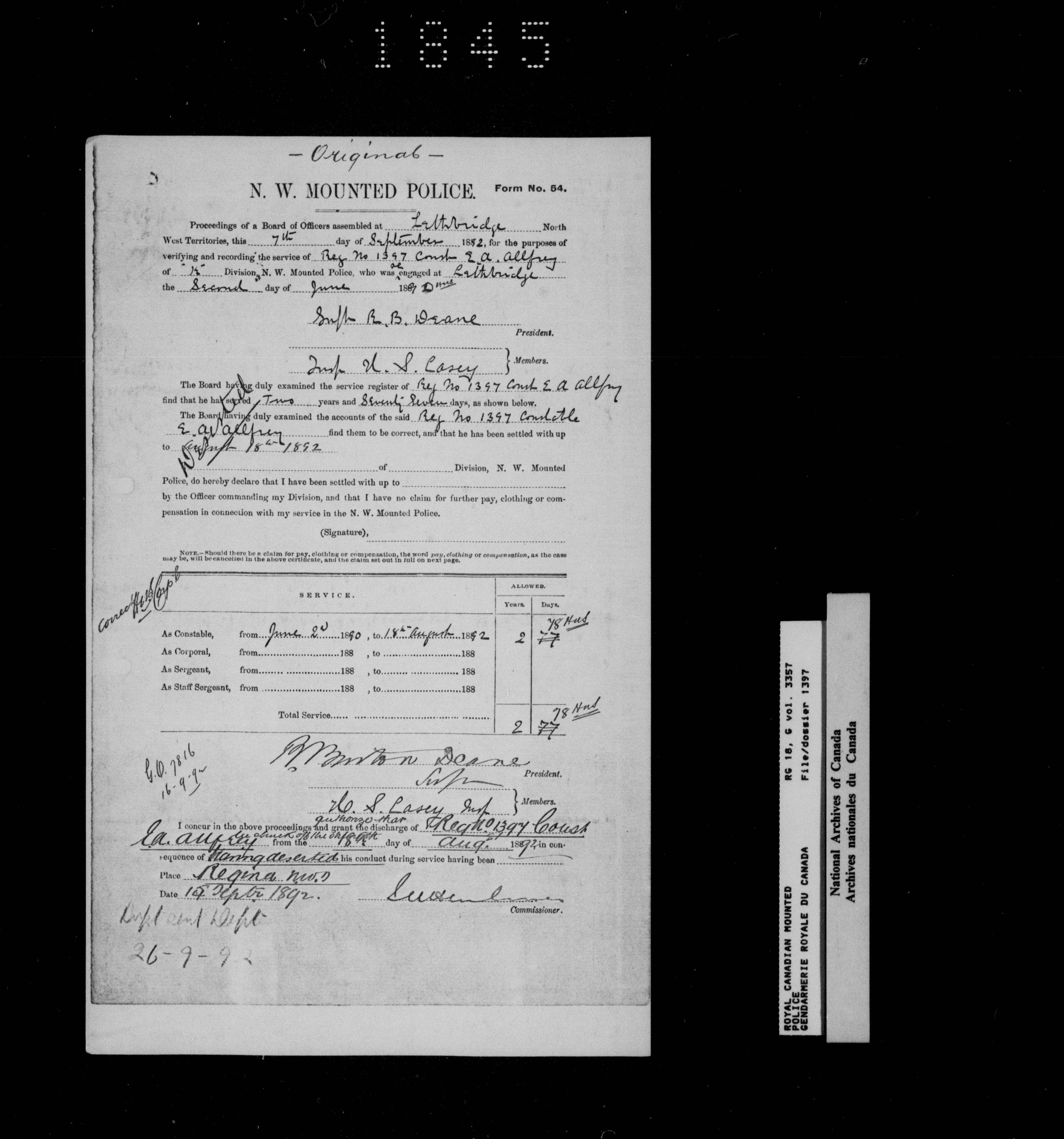 North West Mounted Police : Personnel files for members of the NWMP (1873-1904)