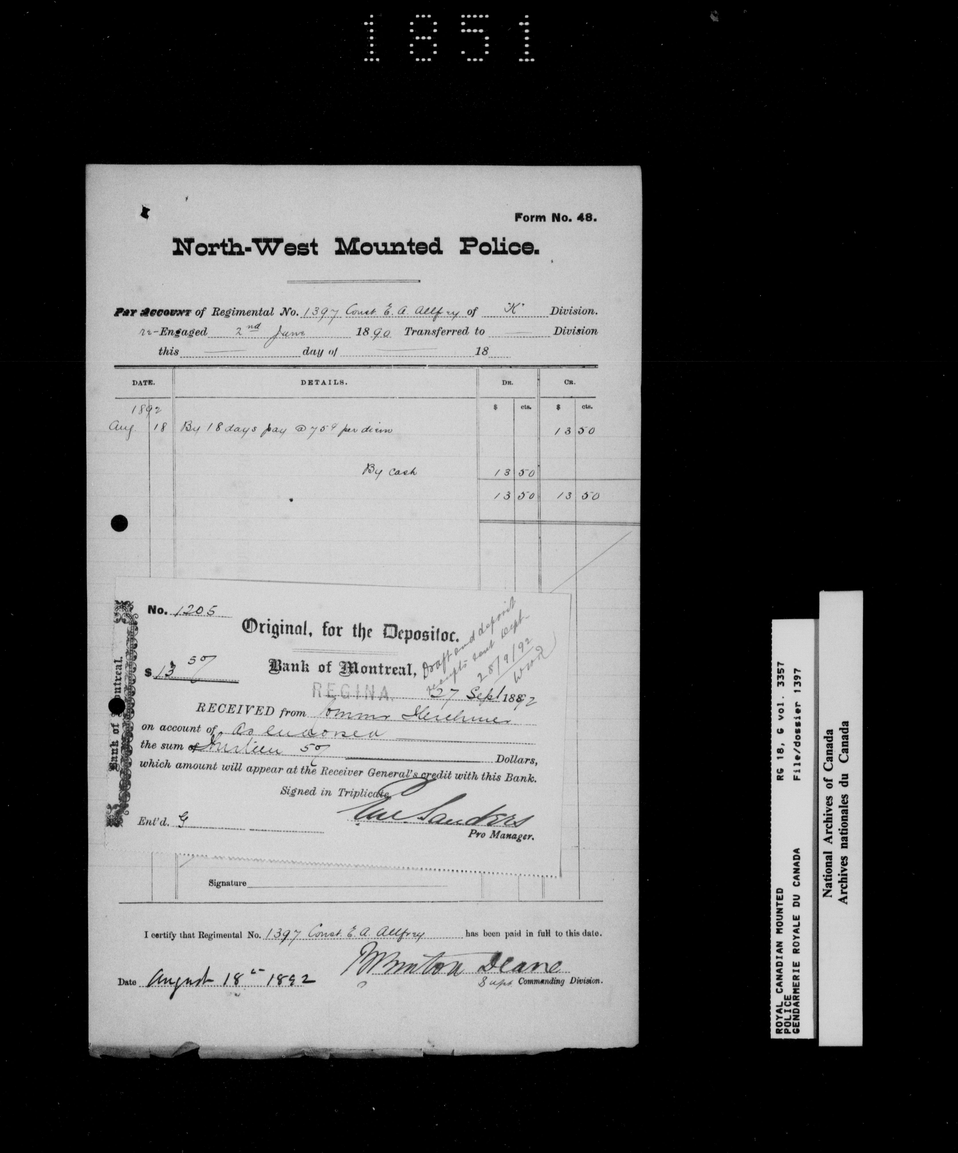North West Mounted Police : Personnel files for members of the NWMP (1873-1904)