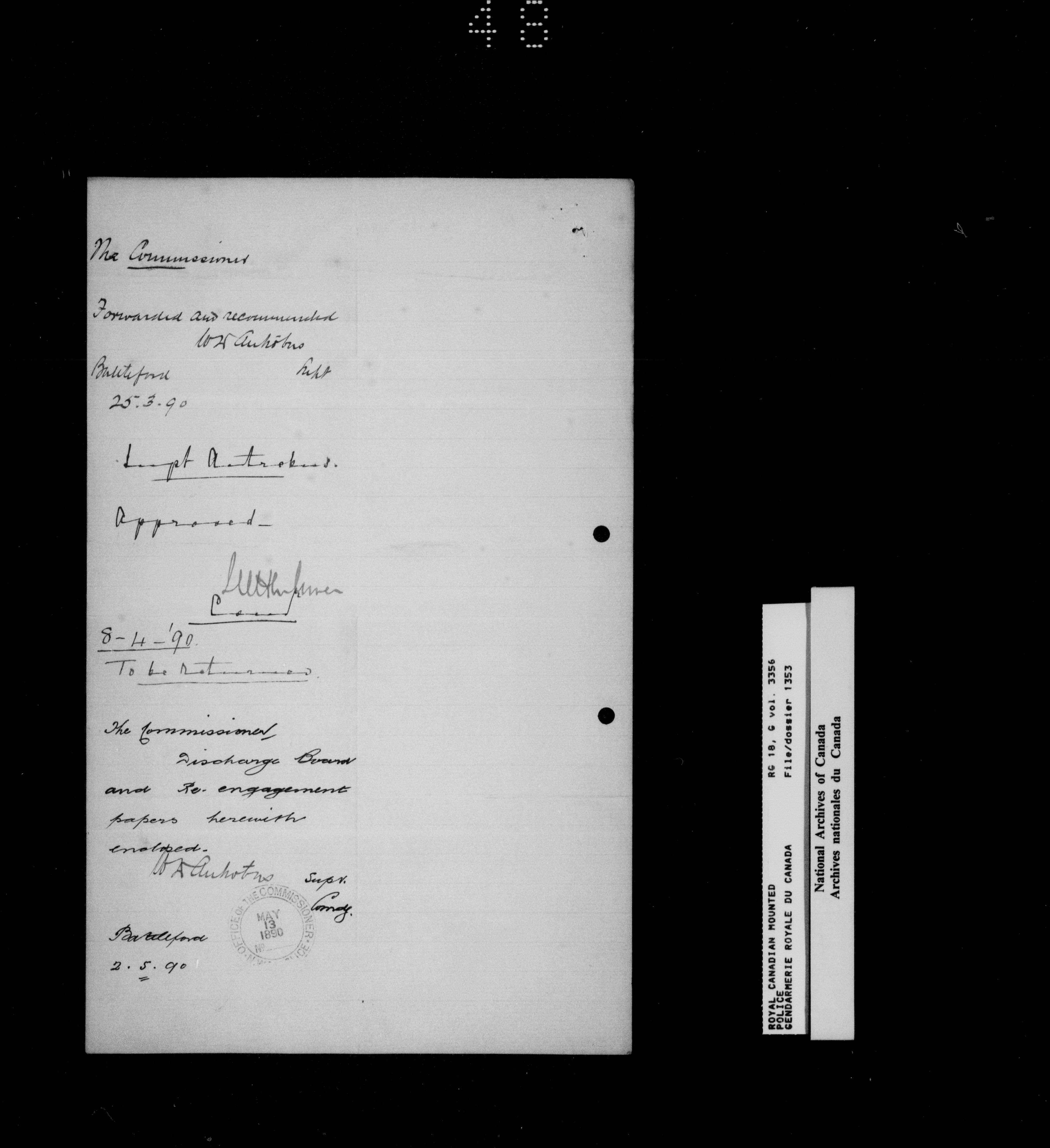 North West Mounted Police : Personnel files for members of the NWMP (1873-1904)
