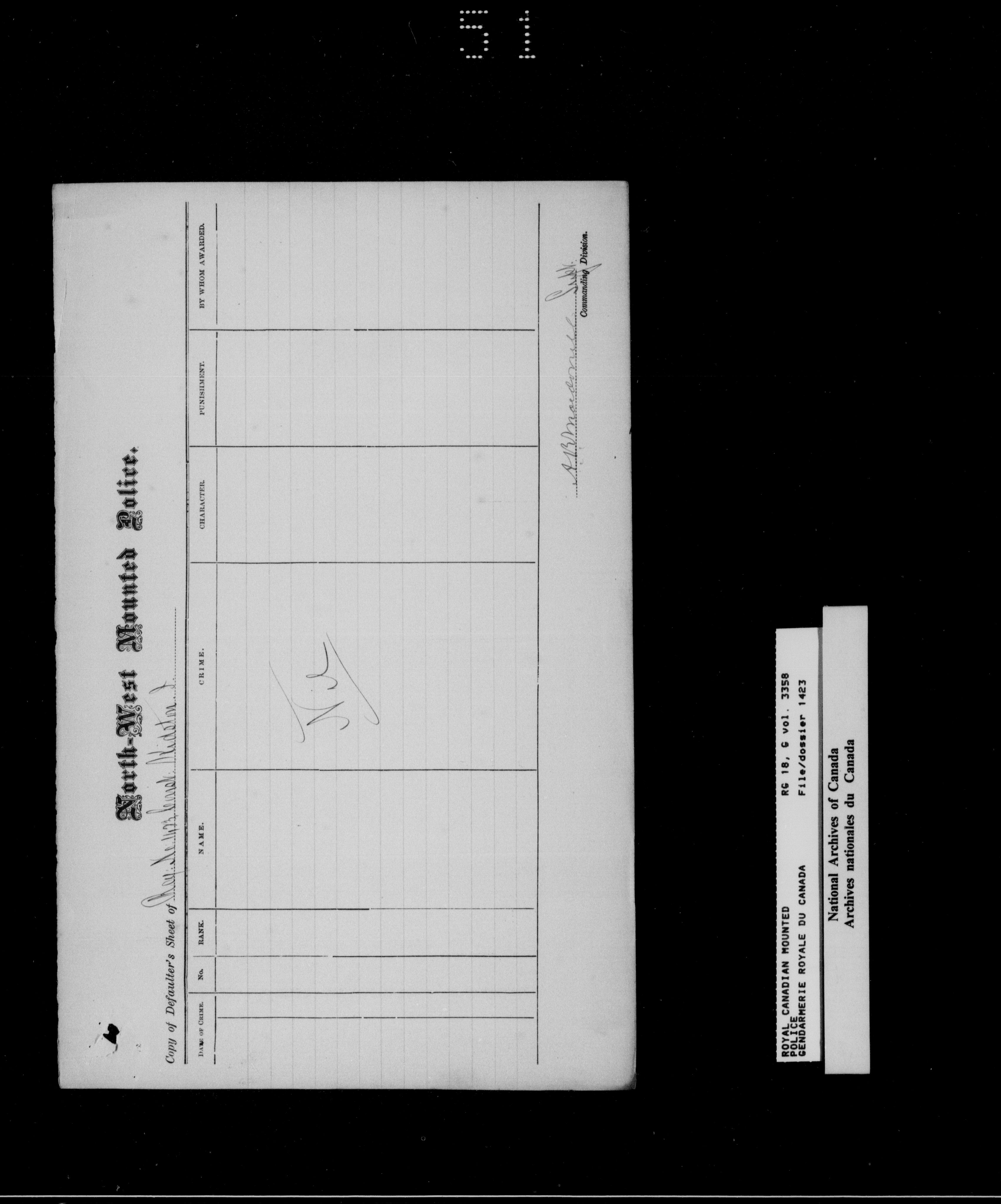 North West Mounted Police : Personnel files for members of the NWMP (1873-1904)