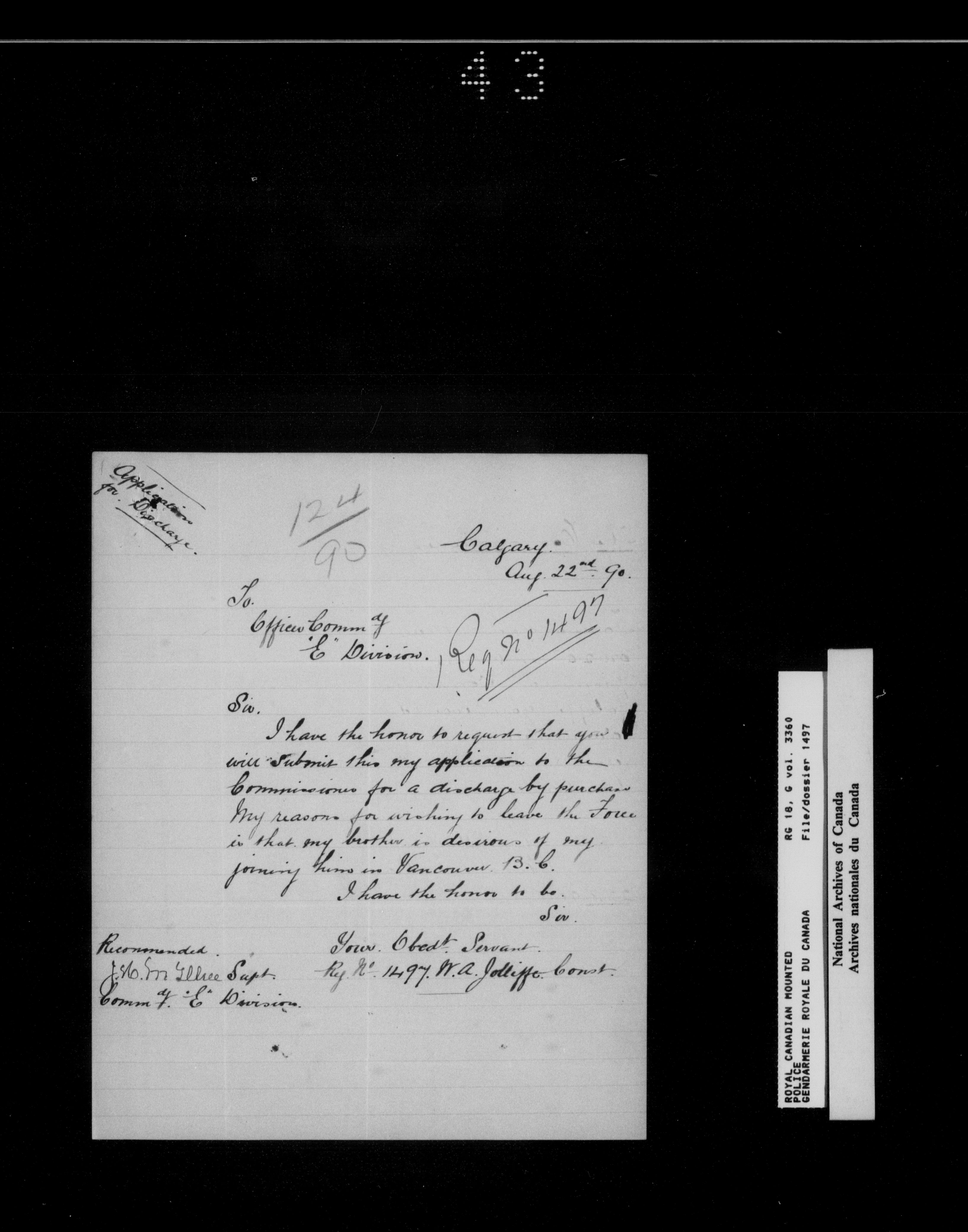 North West Mounted Police : Personnel files for members of the NWMP (1873-1904)