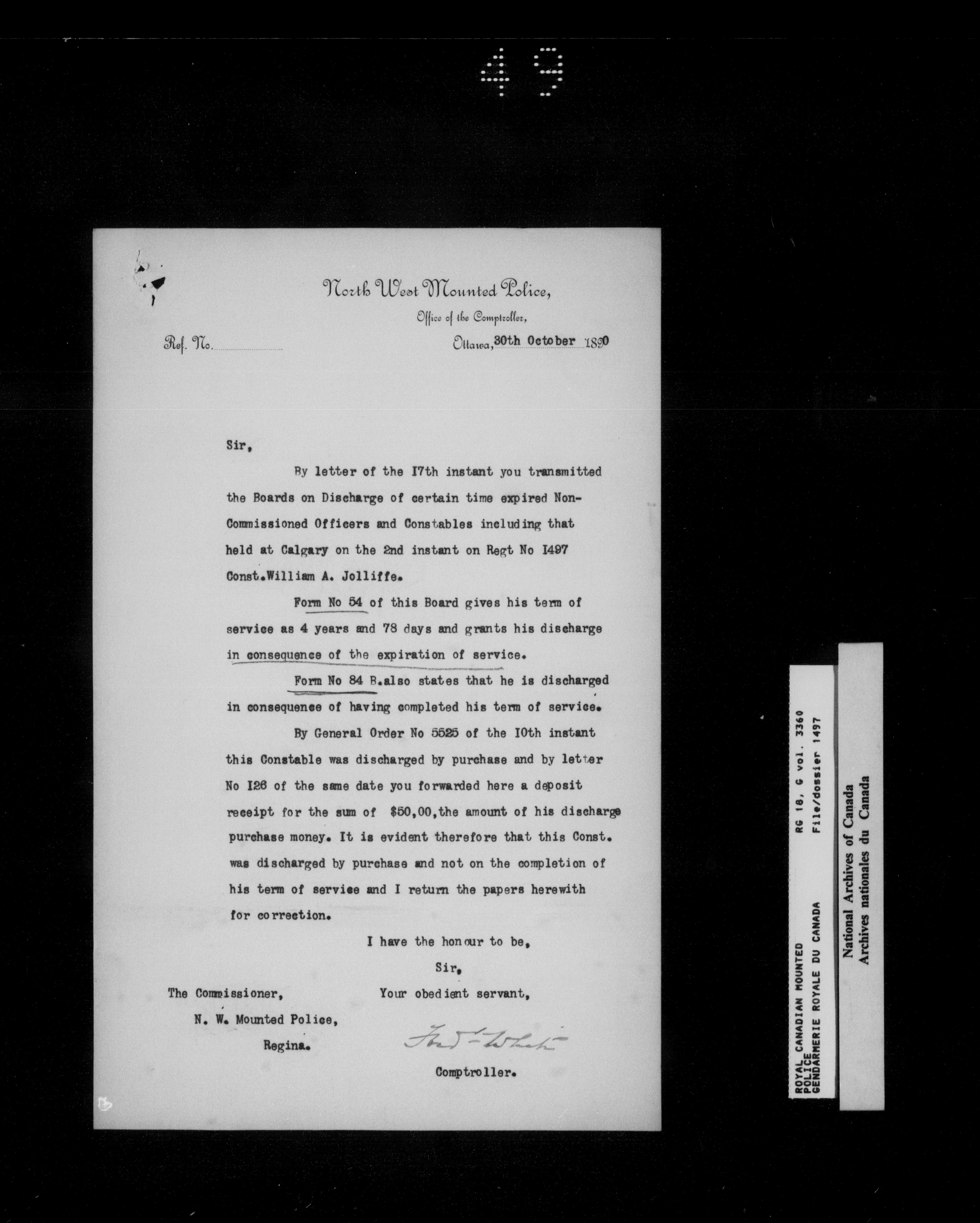 North West Mounted Police : Personnel files for members of the NWMP (1873-1904)