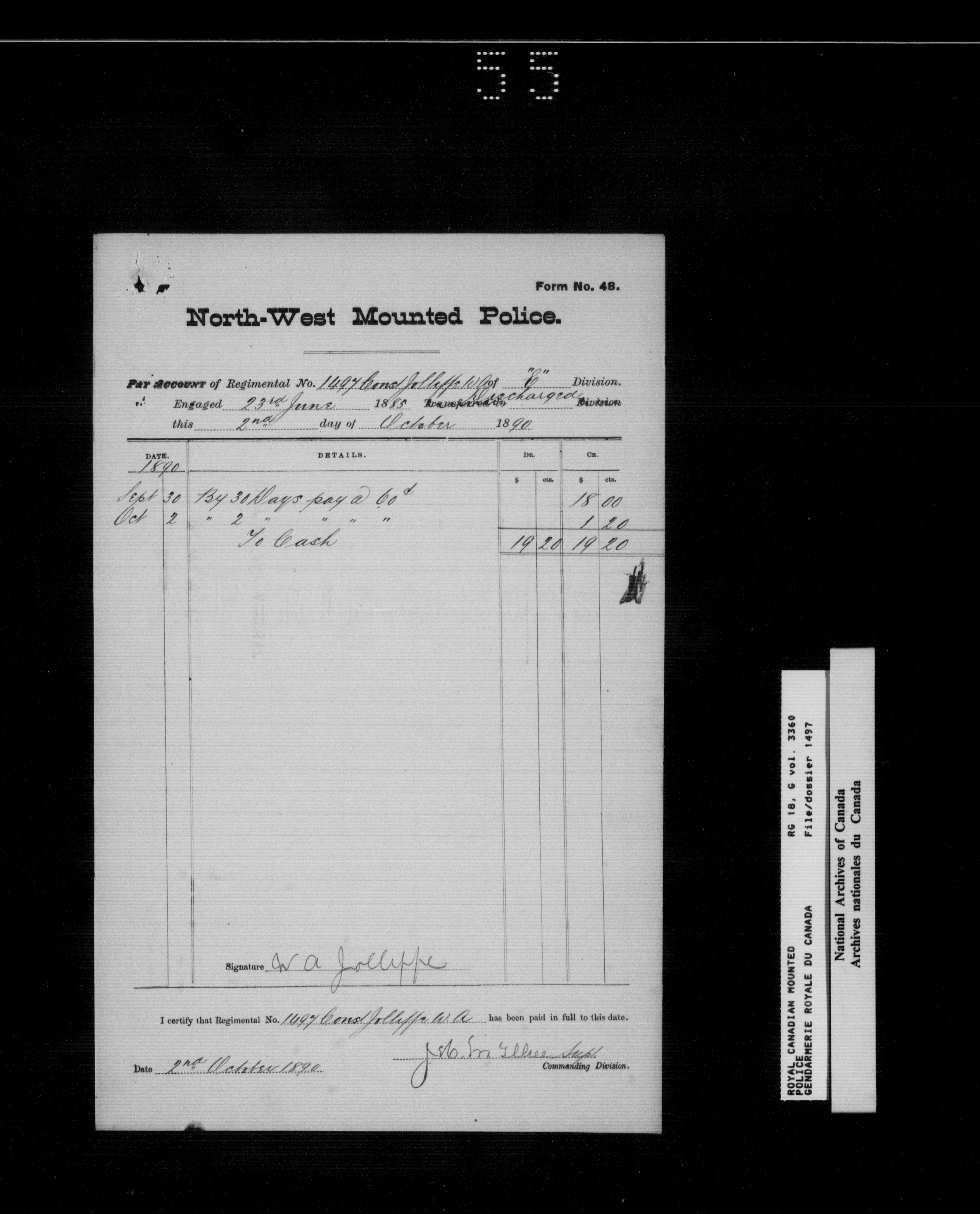 North West Mounted Police : Personnel files for members of the NWMP (1873-1904)