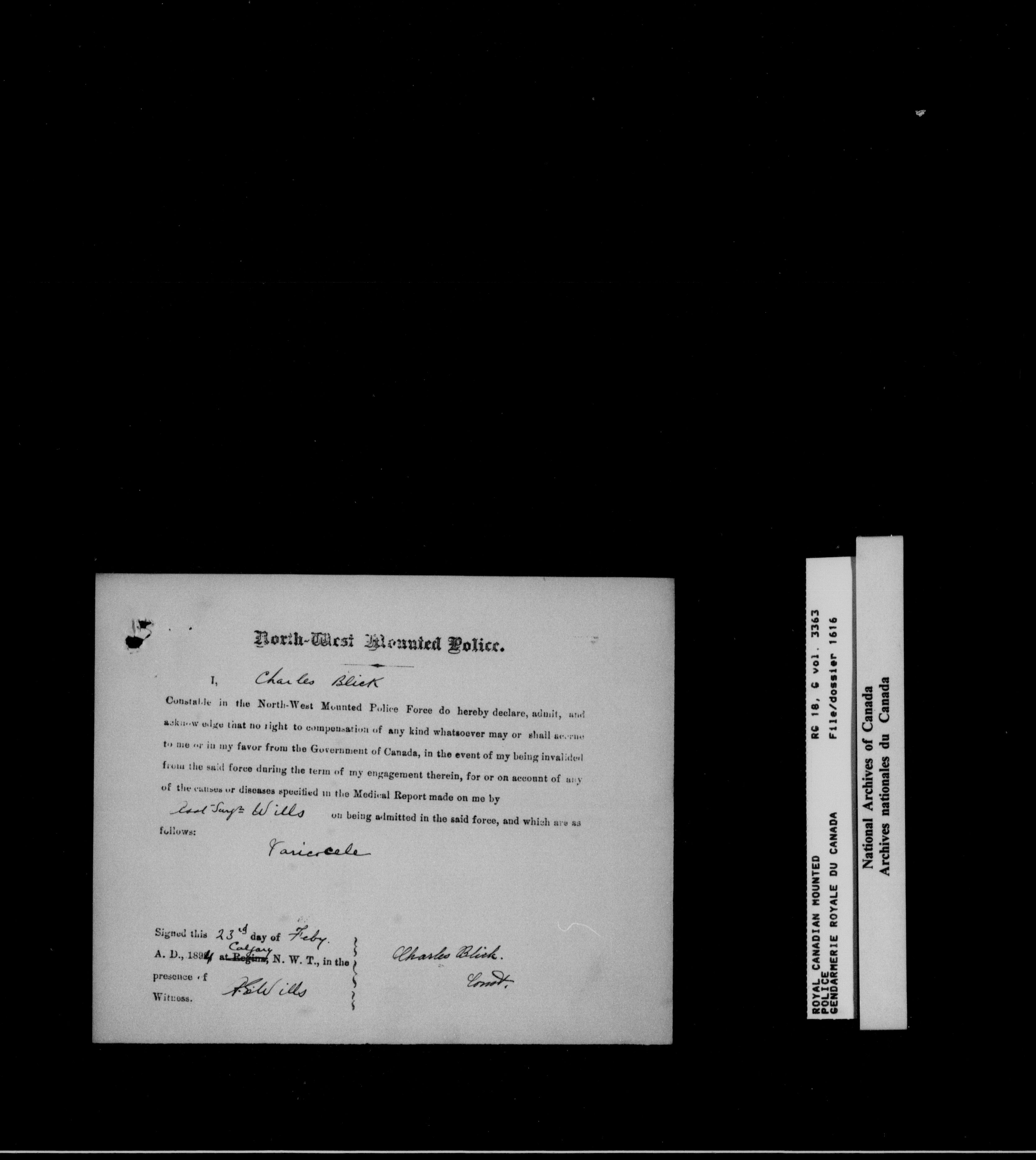North West Mounted Police : Personnel files for members of the NWMP (1873-1904)