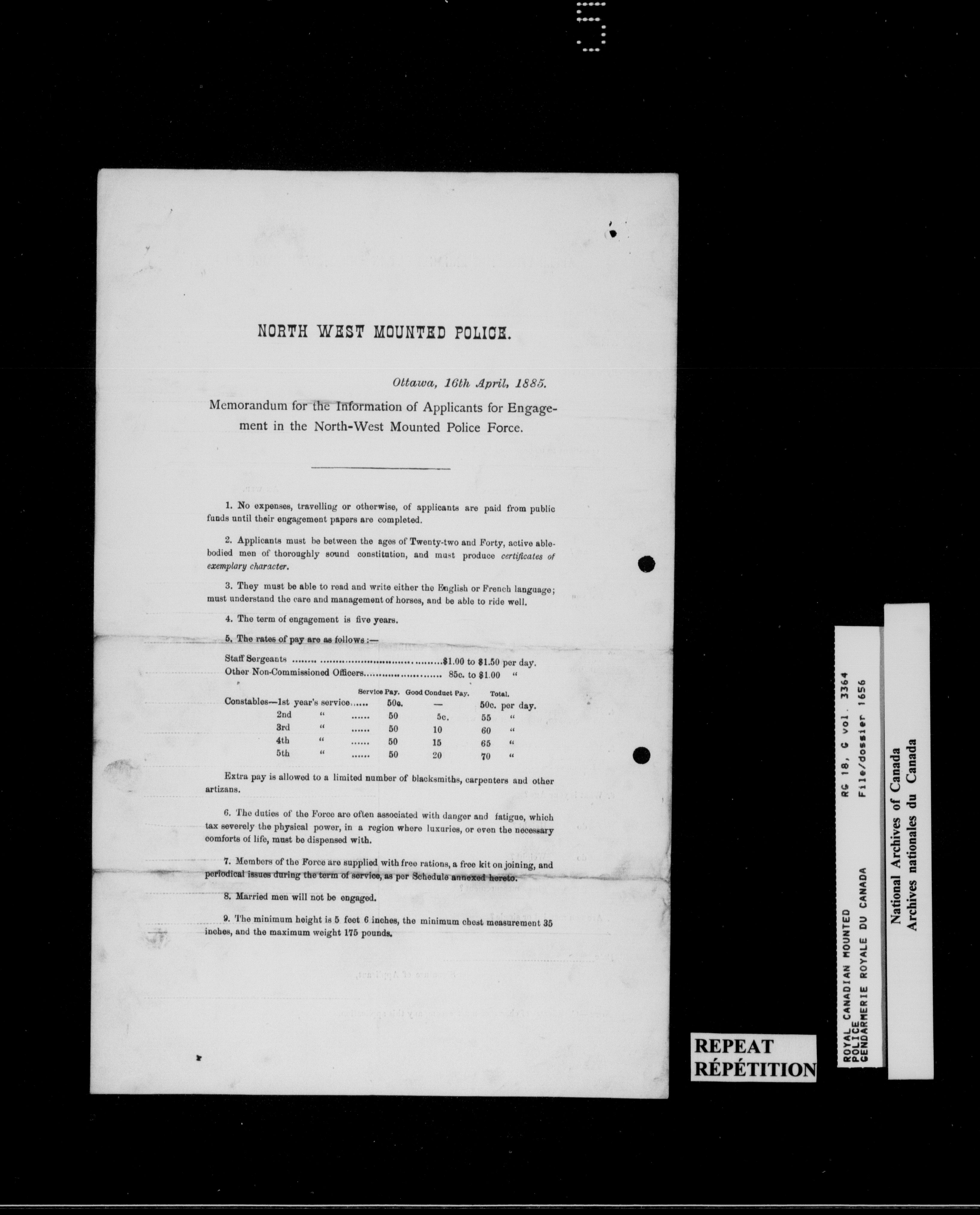 North West Mounted Police : Personnel files for members of the NWMP (1873-1904)