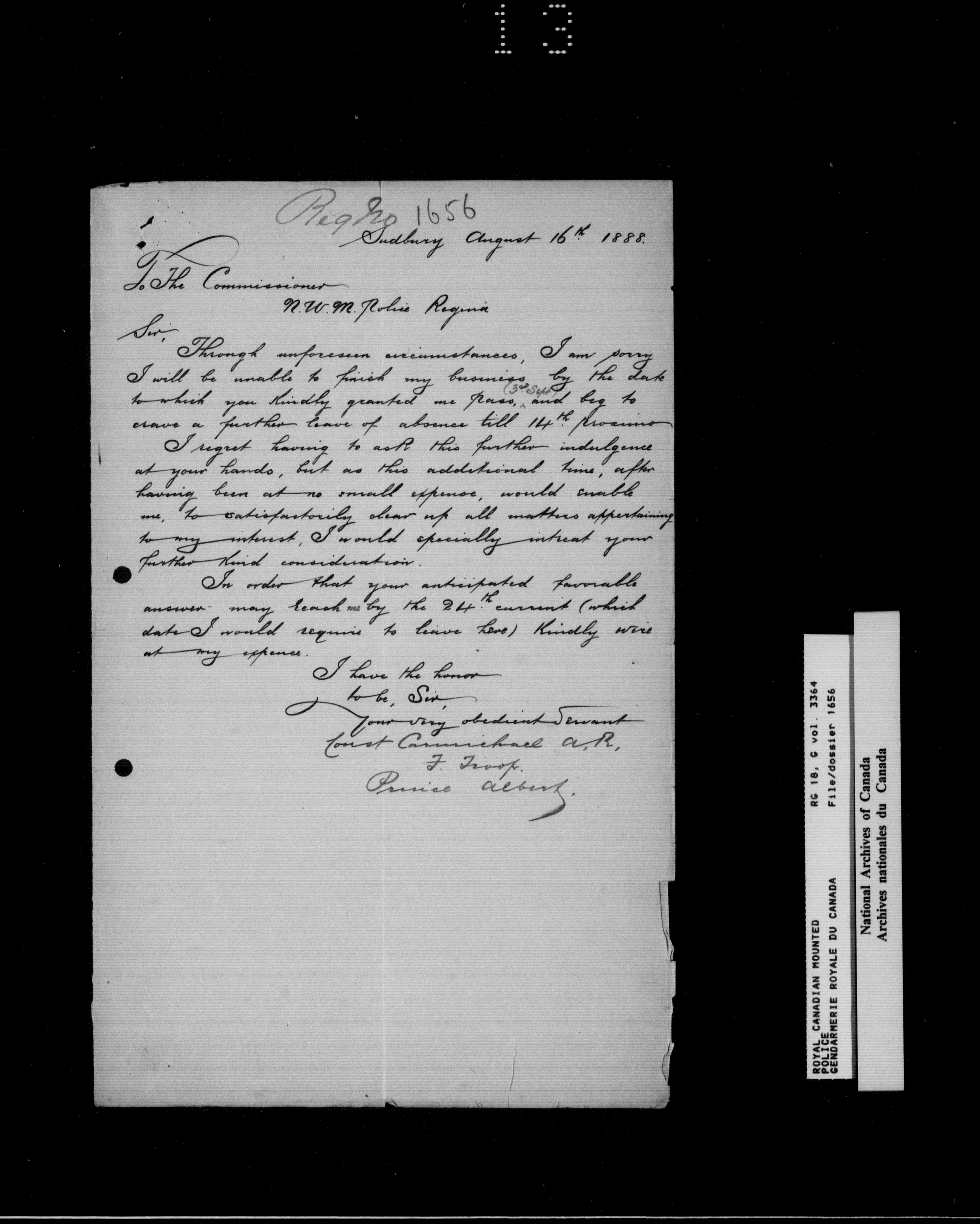 3364; file 1656 to vol. 3364; file 1669