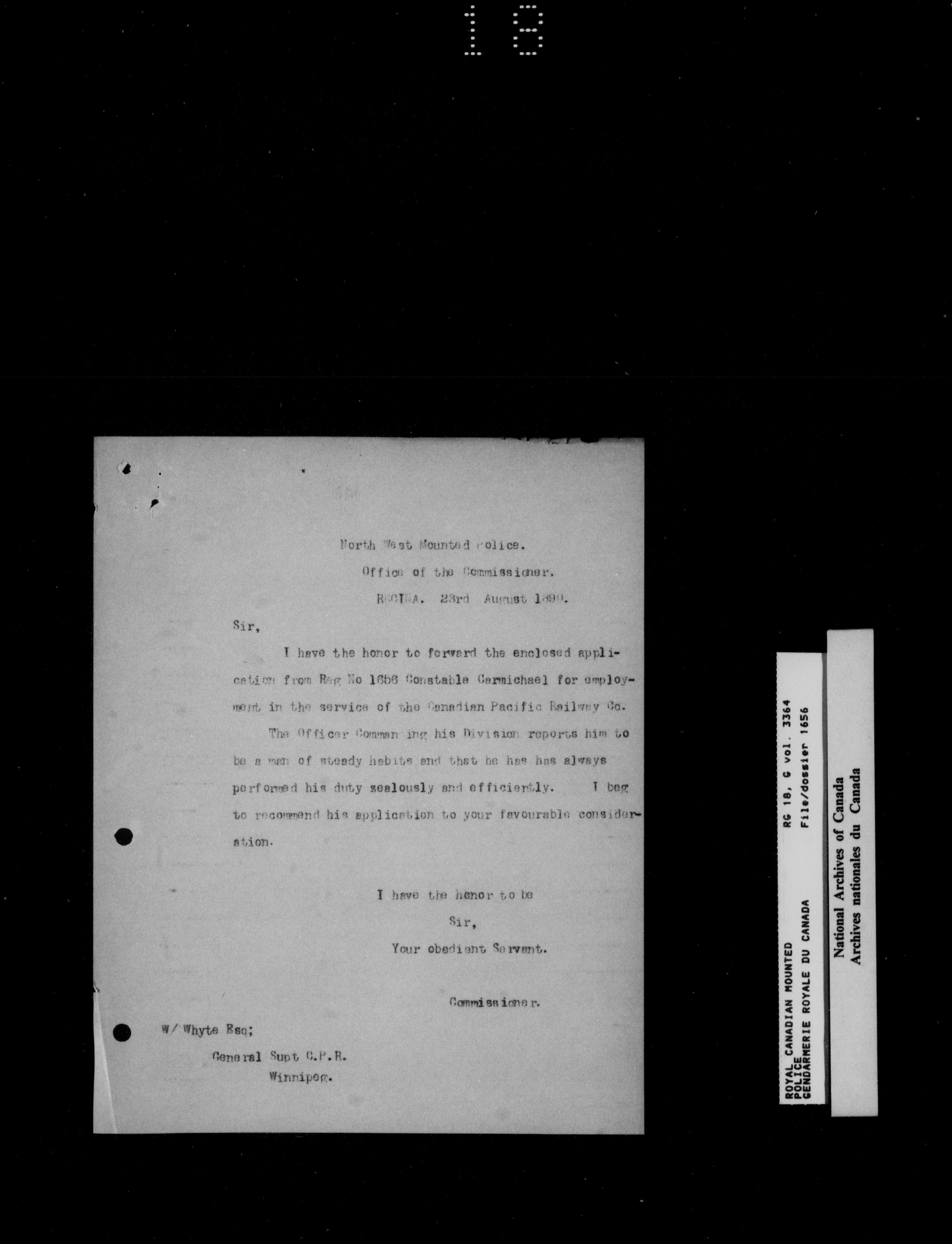 North West Mounted Police : Personnel files for members of the NWMP (1873-1904)