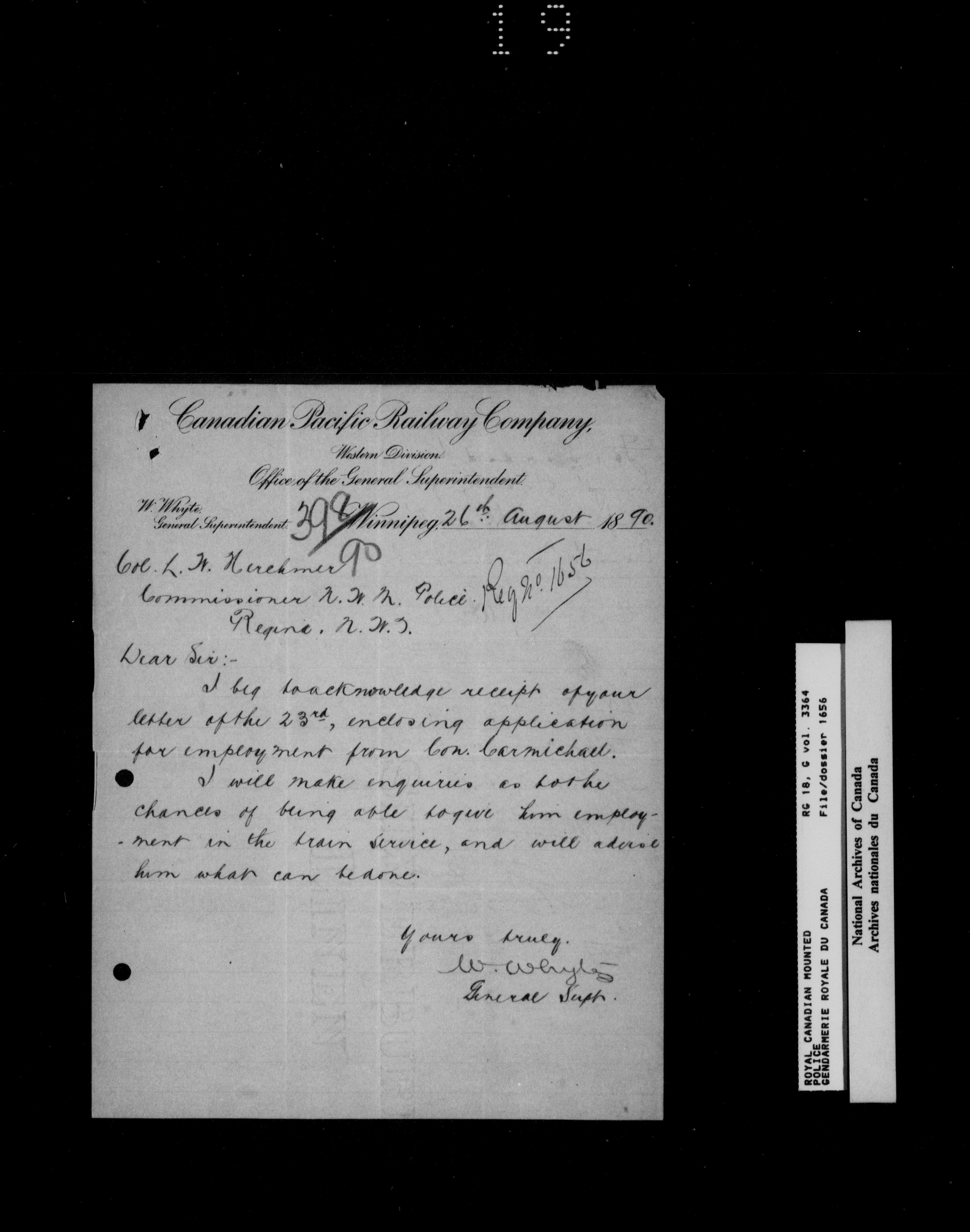North West Mounted Police : Personnel files for members of the NWMP (1873-1904)