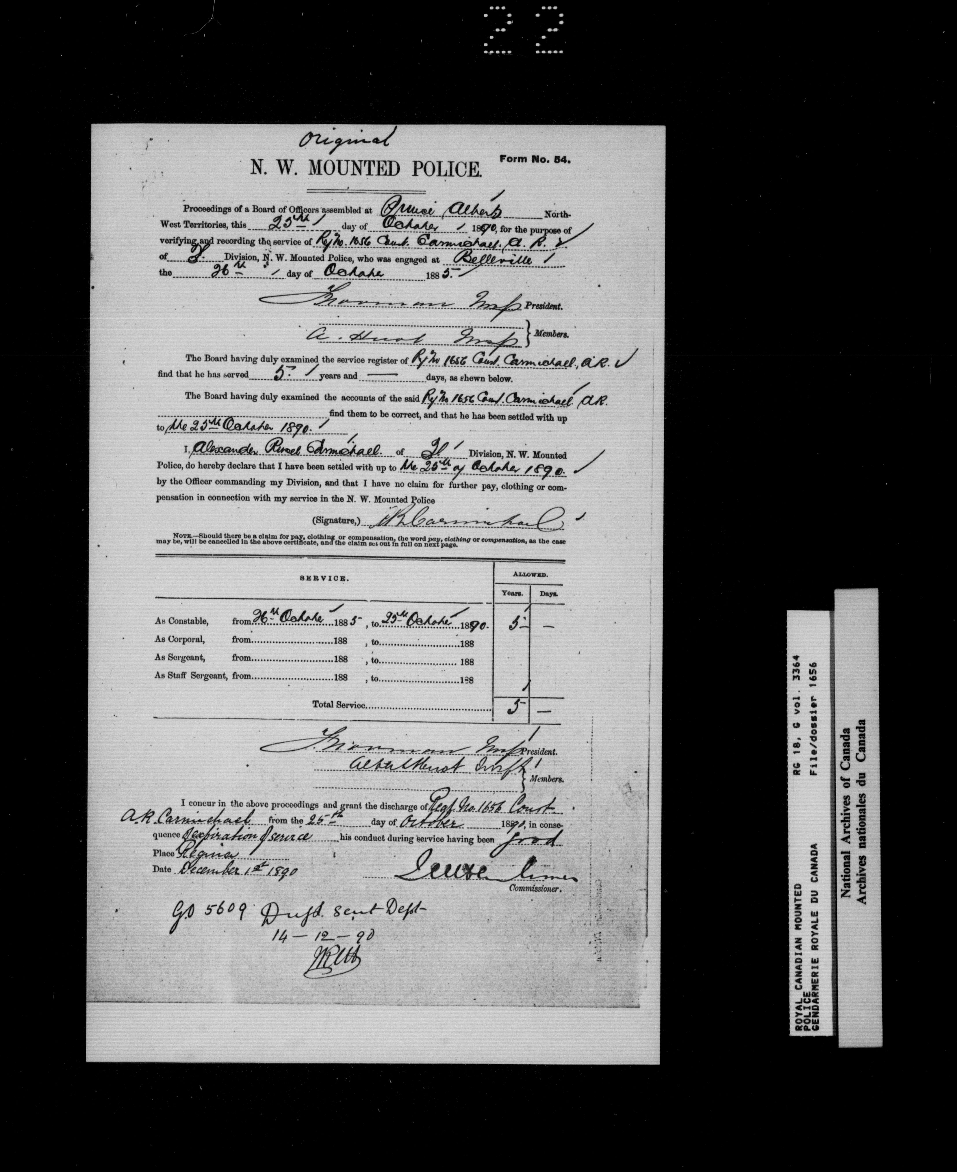 North West Mounted Police : Personnel files for members of the NWMP (1873-1904)