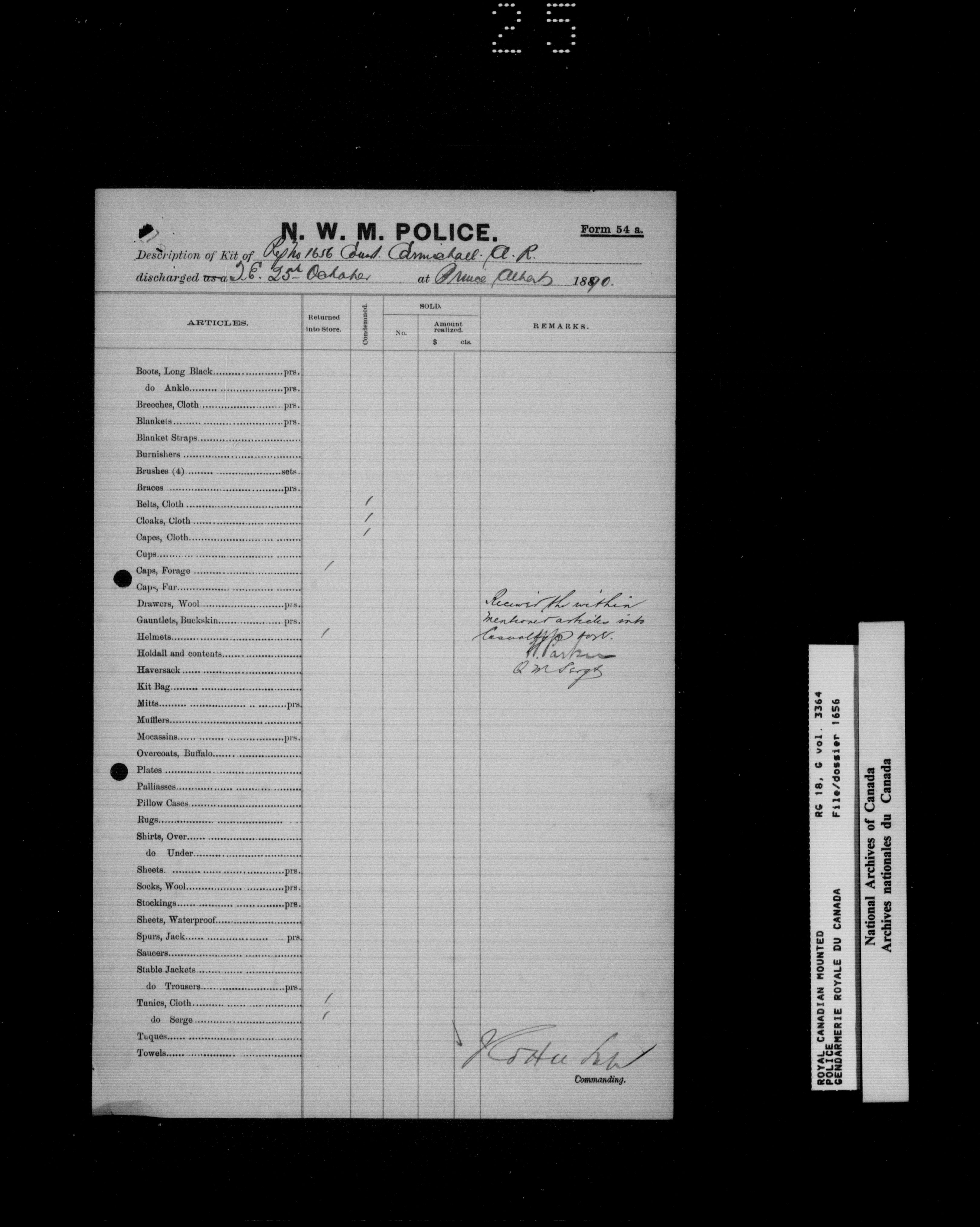 North West Mounted Police : Personnel files for members of the NWMP (1873-1904)