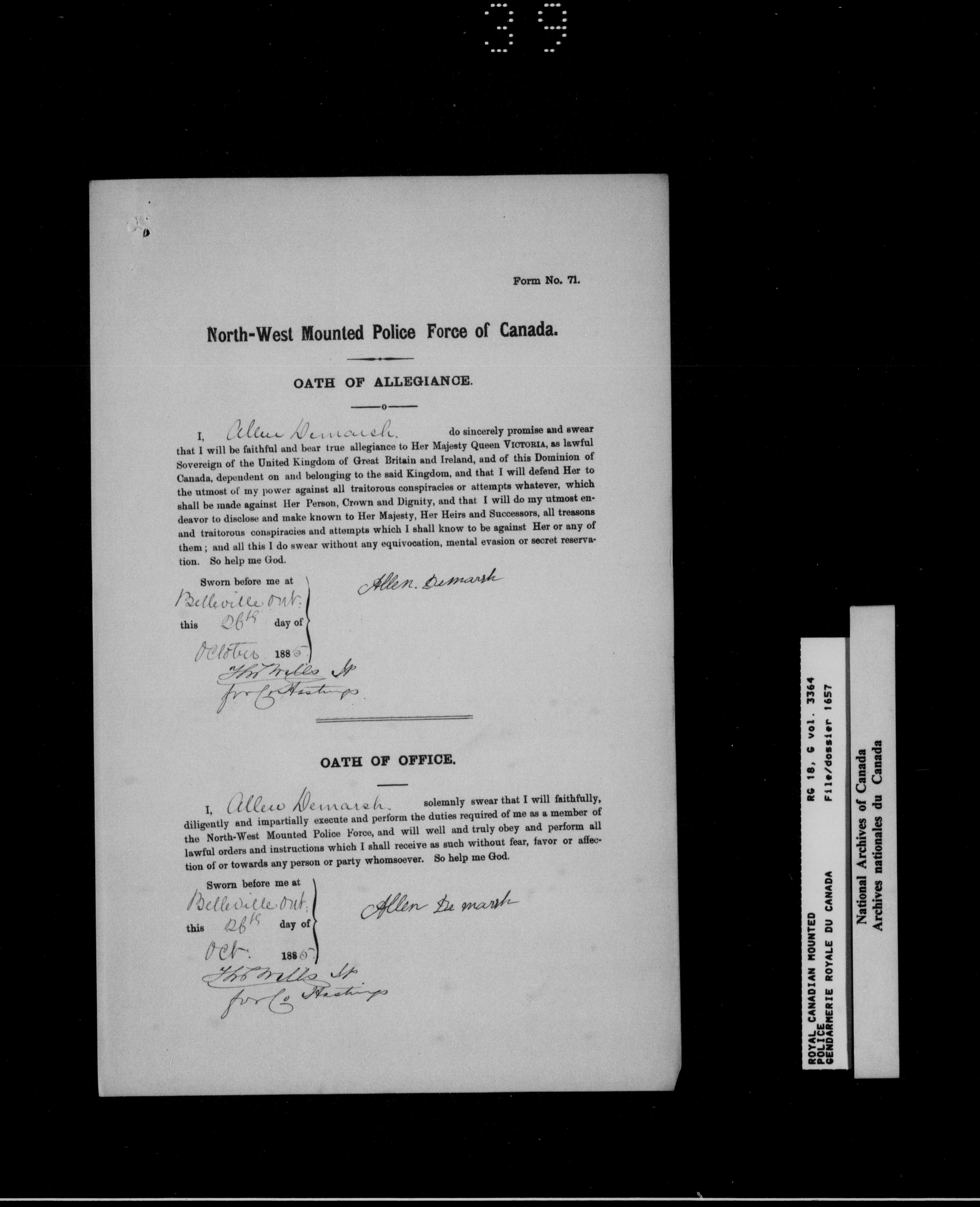 North West Mounted Police : Personnel files for members of the NWMP (1873-1904)