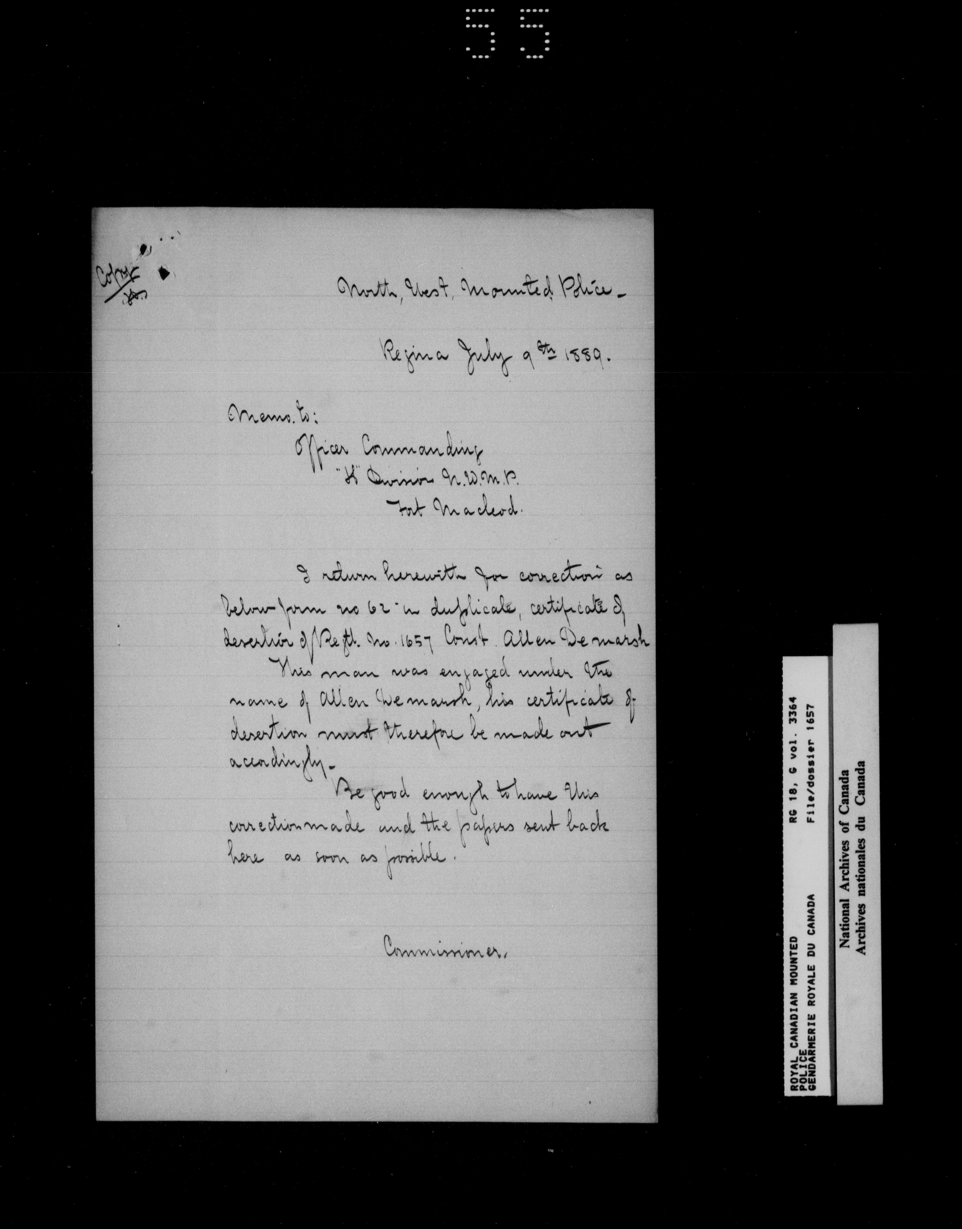 North West Mounted Police : Personnel files for members of the NWMP (1873-1904)