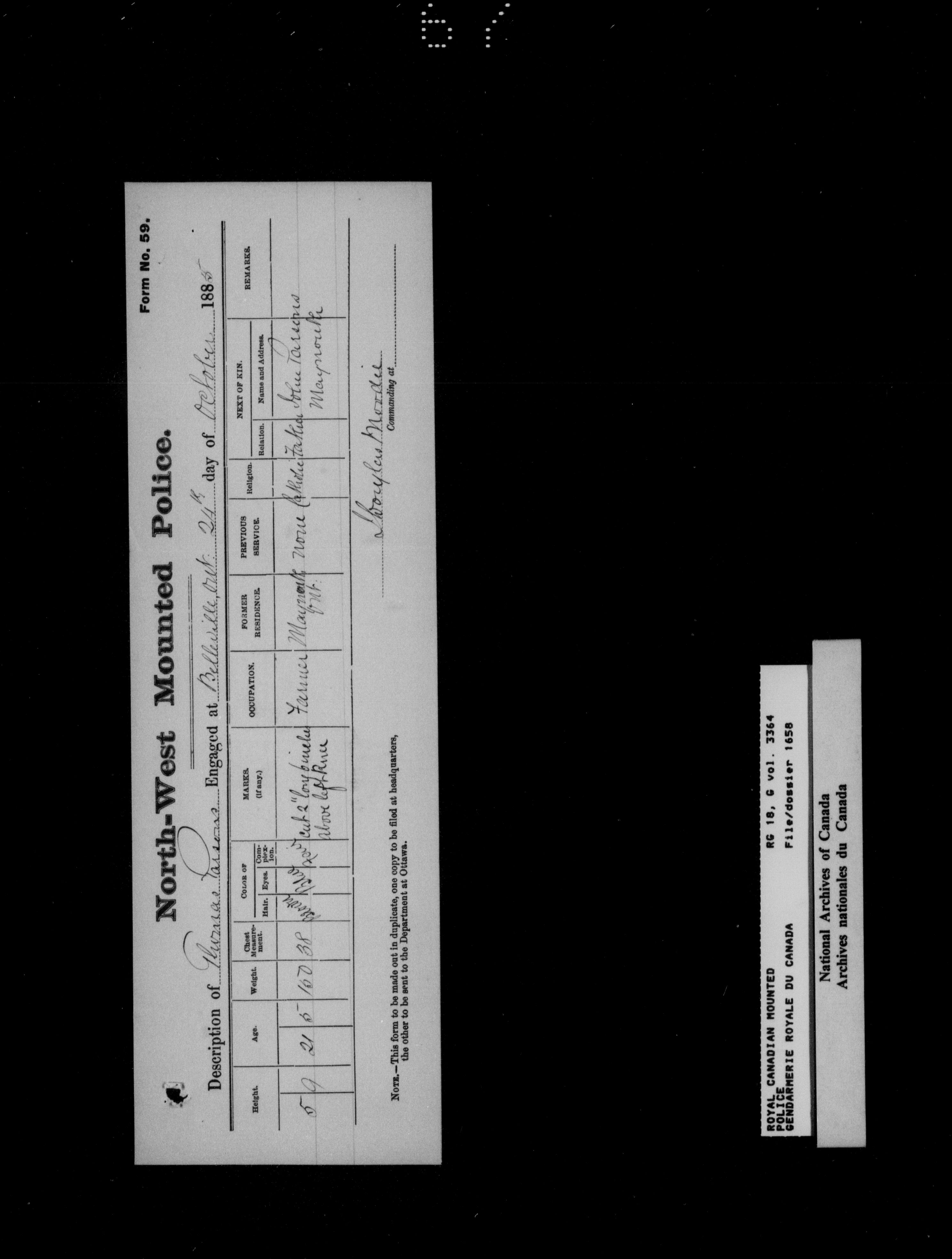 North West Mounted Police : Personnel files for members of the NWMP (1873-1904)