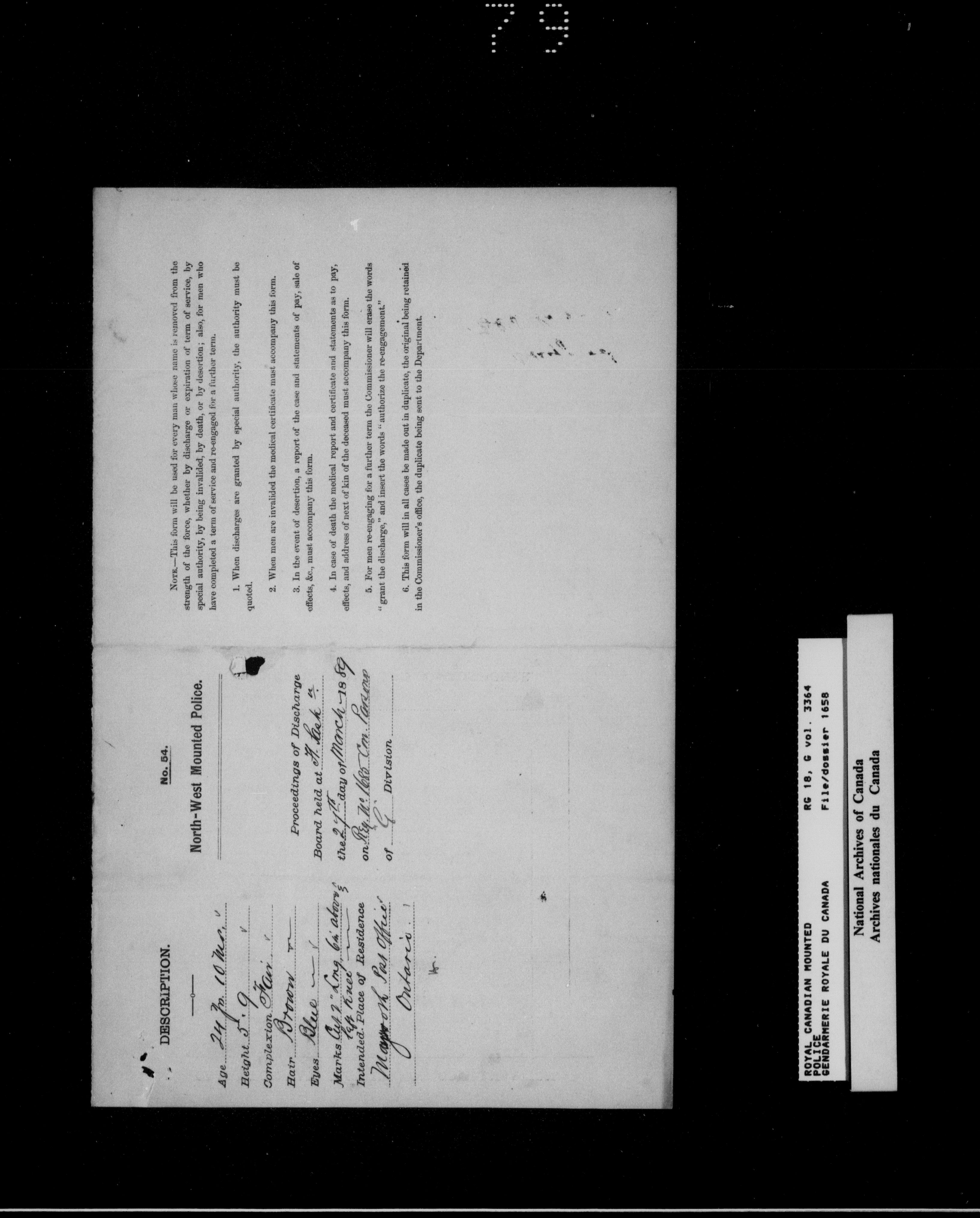 North West Mounted Police : Personnel files for members of the NWMP (1873-1904)