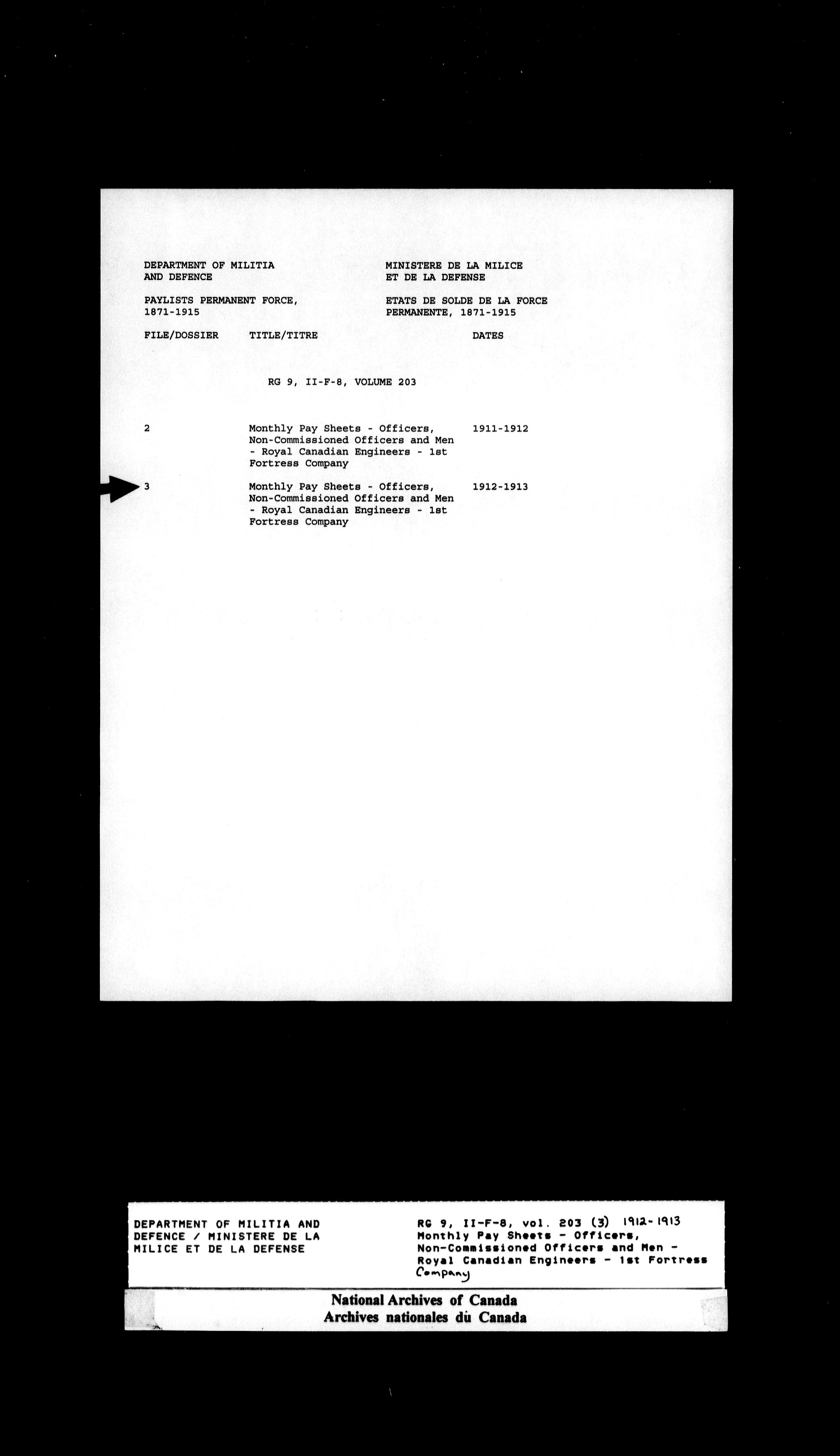 Nominal rolls and paylists for the Permanent Force (1871-1915) - 18402