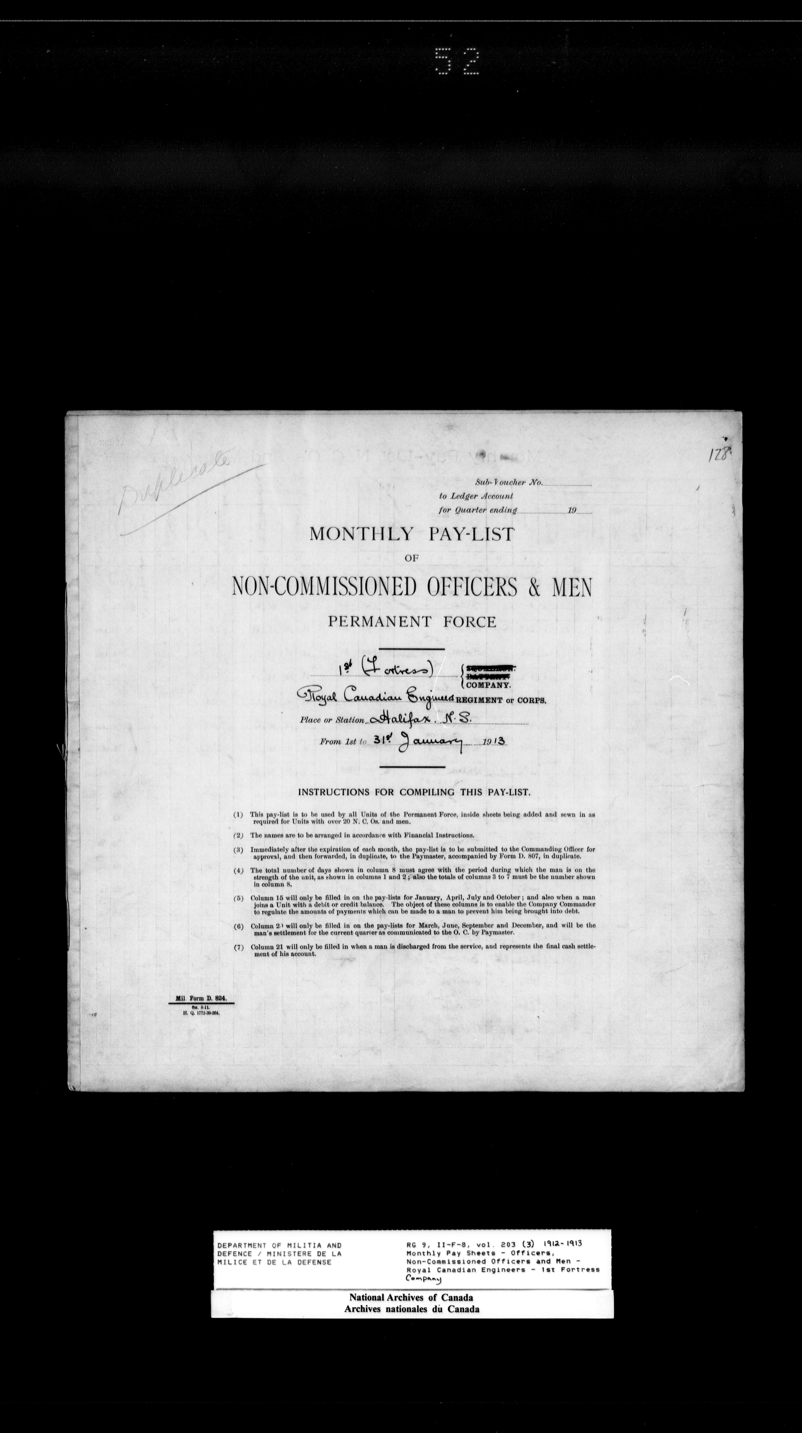 Nominal rolls and paylists for the Permanent Force (1871-1915) - 18403